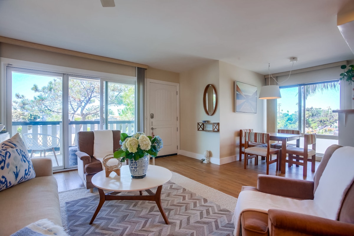 Agus an tAigéan Ciúin ar thaobh amháin agus Del Mar Village ar an taobh eile, b'fhéidir, an t - ionad saoire is mó atá suite go hidéalach sa cheantar. Níl ann ach siúlóid ghearr go dtí an trá atá suite faoi bhun an ionaid saoire, nó téigh ag spaisteoireacht dhá bhloc sa treo eile chun an iliomad búitíceanna agus bialanna galánta a aimsiú. Tá táille ionaid saoire de $ 29.00/oíche san áireamh sa phraghas iomlán a thaispeántar ar Airbnb. Clúdaíonn an táille seo páirceáil, Wi - Fi, agus rochtain ar shaoráidí ar an láthair.