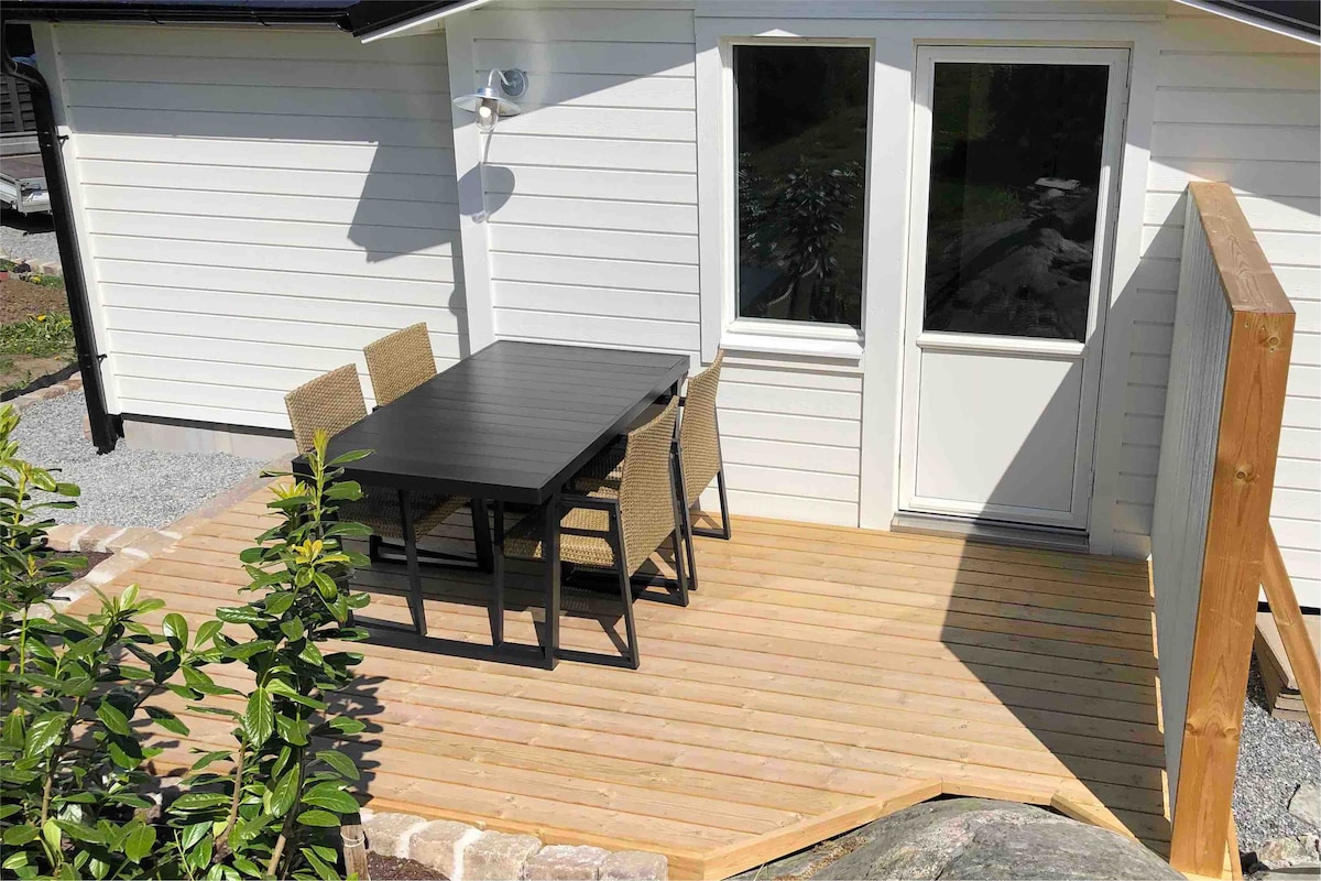 Cábán beag le cistin lánfheistithe agus leaba lae do bheirt. Tá paitió sa teachín ina bhfuil áiseanna beárbaiciú agus troscán lasmuigh. Tá rothair le fáil ar iasacht againn freisin. Is siúlóid trí nóiméad é an teachín ón siopa grósaera is gaire (Hemköp). Má shiúlann tú cúpla méadar go dtí, críochnaíonn tú i gcuan Klåva áit a bhfuil deiseanna siopadóireachta agus rogha mhaith bialanna agus caiféanna. Tá an teachín suite 3 nóiméad ar chosán rothar chuig trá ina bhfuil cé, trá agus aillte. Cuireann Hönö roinnt áiteanna snámha áille ar fáil ar fud an oileáin ar fad.