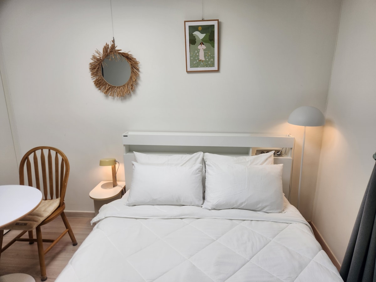※ Ní féidir ach le haerchóiritheoirí de chineál síleála téamh a oibriú. Mo fhanacht saor in aisce féin Le Collective Cuireann Le Collective tréimhsí fanachta agus spásanna compordacha ar fáil inar féidir leat muinín a bheith agat astu agus fanacht nuair is mian leat dul ar do thaisteal neamhspleách féin ag am ar bith, áit ar bith. - Seiceáil isteach dhíreach (Ar an dáta don tseiceáil isteach, seolfar an treoir don tseiceáil isteach ag 1 PM trí ríomhphost nó trí theachtaireacht Airbnb.) - Bainistíocht ar réitigh rialaithe lotnaidí do gach seomra