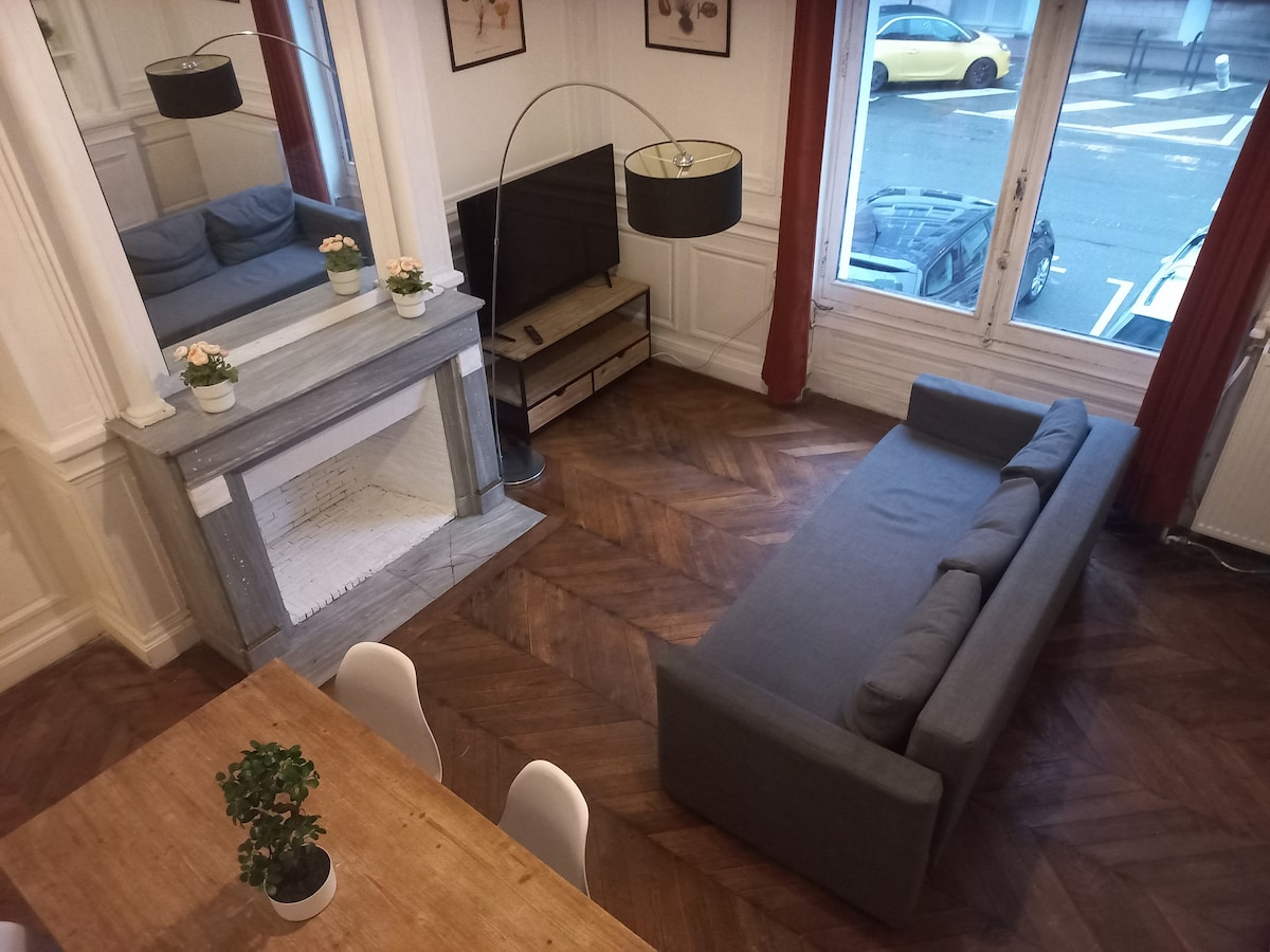 Árasán déphléacsach atá lán de dhraíocht, maisithe go blasta, i gcroílár Old Lille: - Siúlóid 10 nóiméad ón 2 stáisiún Lille Flanders agus Lille Europe - Siúlóid 10 nóiméad ó Metro Rihour nó Metro Lille Flandre - Siúlóid 5 nóiméad ó Grand Place - 1.5km (siúlóid 20 nóiméad) ó Zénith de Lille - 12km ó Grand Stade Pierre Mauroy in Villeneuve - d'Ascq(15 nóiméad i gcarr nó 40 nóiméad ar mheitreo) - 12km ó aerfort Lille - Lesquin Páirceáil faoi thalamh, rothair V'Lille, bus ,… tá gach rud in aice láimhe.