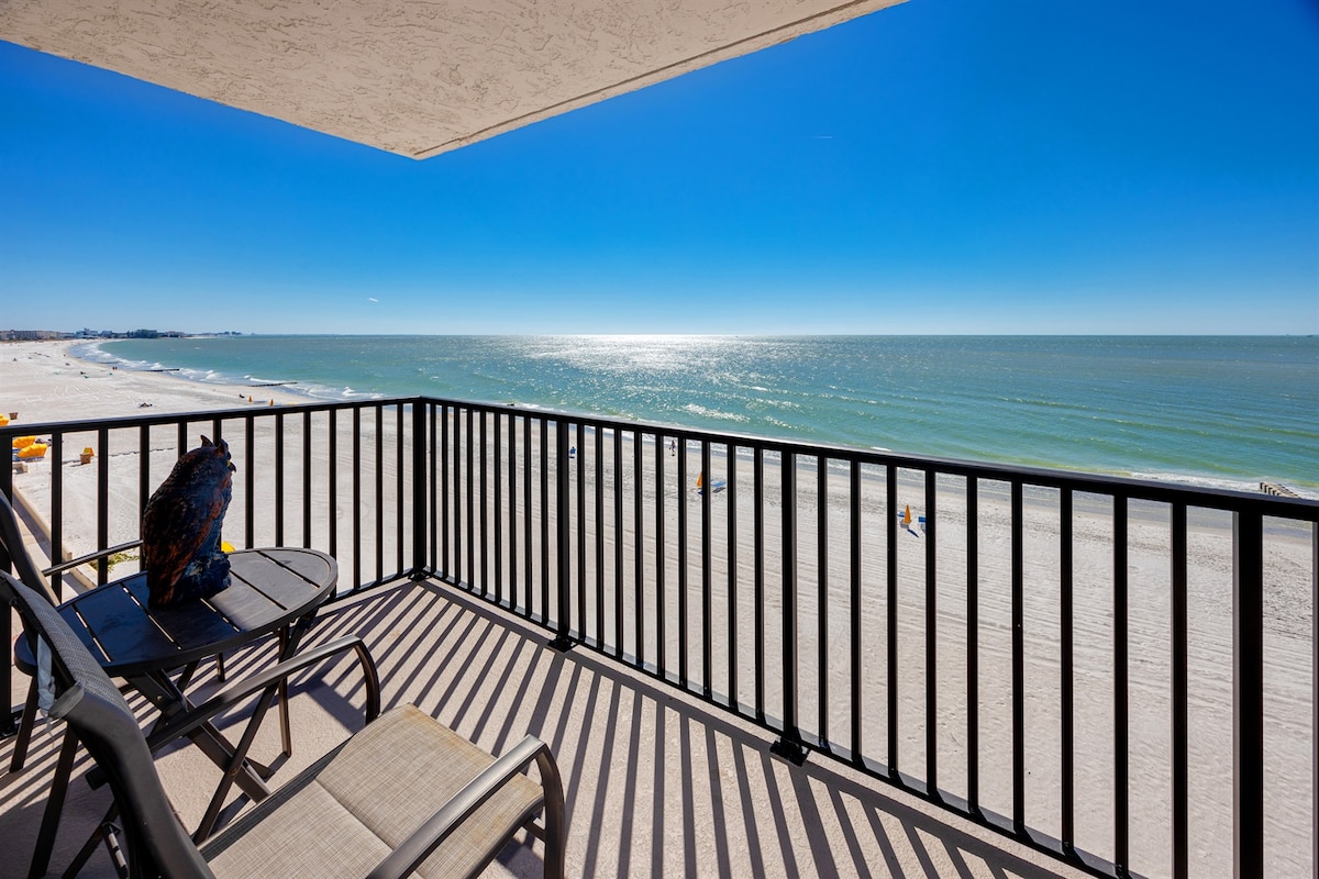 Beautifully updated 4th floor 3 bedroom beach front condo! Enjoy gorgeous views of the Gulf of Mexico from a large screened in balcony! Gulf view from both the living room and master bedroom. A large updated kitchen is perfect for the whole family. This condo sleeps 6 comfortably. Cable and WIFI are available as well as beach necessities. A view of the Bay from the front door. Walking distance to John’s Pass. Due to the hurricane, there is still minor repairs being done around the building/town.