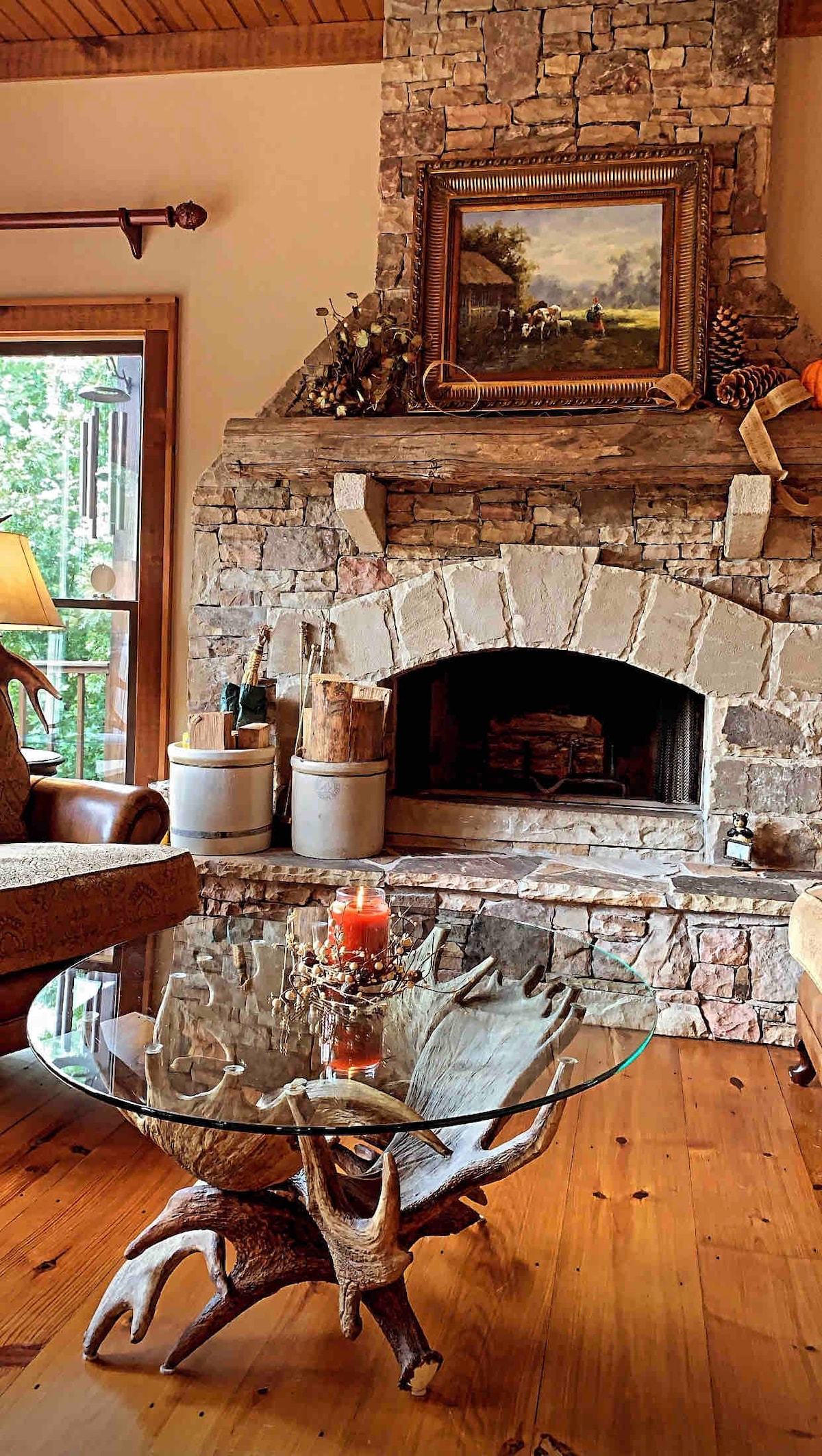 Éalaigh chuig do Thearmann Sléibhe! Díreach os cionn an bhaile, cuireann ár dteach athchóirithe radhairc iontacha sléibhe agus locha ar fáil - nóiméad ó shiopadóireacht, bia agus nithe is díol spéise. Bain sult as cistin chócaire, leapacha compordacha le línéadach tí sómasach, agus tobán te príobháideach. Tá gazebo dhá leibhéal, poll dóiteáin, agus gríoscán gáis ar an deic mhór - foirfe chun do scíth a ligean tráthnóna. Tá leaba rí agus tobán jacuzzi sa phríomhsheomra suite. Chomh maith leis sin, bain sult as teilifíseáin chliste, idirlíon tapa snáithín, agus seomra cluiche spraíúil. Tá do shaoire fhoirfe sléibhe ag fanacht leat!
