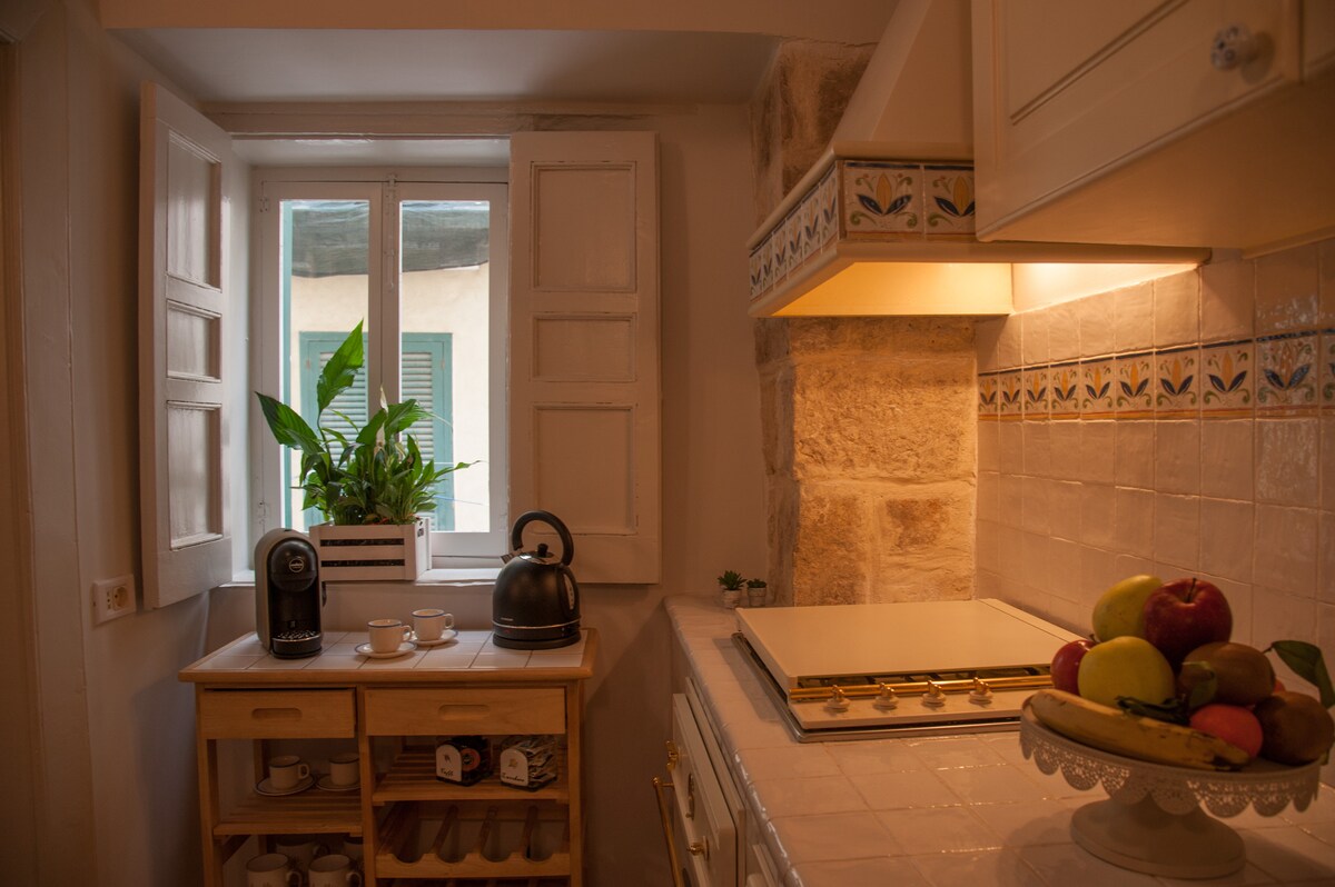Tá suíomh faoi phribhléid ag an árasán: i gcroílár lár stairiúil Trani, beidh rochtain éasca ag aíonna ar gach ní is díol spéise áitiúla agus tabharfaidh siad cuairt ar an ionad stairiúil de shiúl na gcos. Tá dhá sheomra leapa mhóra dhúbailte, 2 sheomra folctha (en suite amháin), cistin seomra suí le leaba thoilg dhúbailte a bhfuil balcóin álainn ann freisin a bhfuil balcóin álainn ag breathnú amach ar phort fuinniúil Trani. Tá an teach i bpálás stairiúil ach úrnua, toisc go ndearnadh athchóiriú air in 2023.