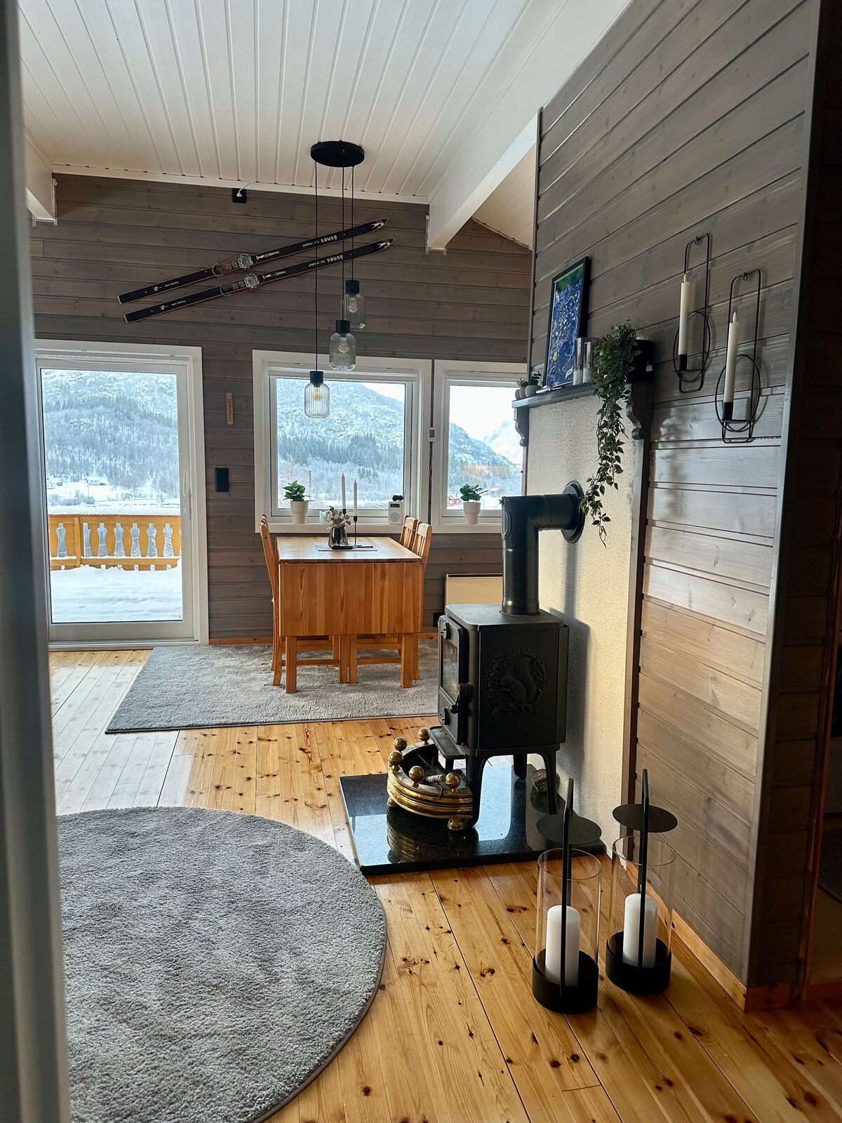 Samhlaigh an tAmaidí Bán ag damhsa ar fud na spéire sa gheimhreadh, nó tráthnóna gan deireadh de ghrian mheán oíche cois teallaigh sa samhradh. Tá ár gcábán suite idir lochanna glana agus beanna drámatúla i bhfíor-fhiántas. Geimhreadh: turasóireacht sciála, siúl bróga sneachta, Soilse an Tuaiscirt. Samhradh: fánaíocht, iascaireacht, snámh, suaimhneas iomlán. 35 nóiméad ó aerfort Harstad, 2.5 uair an chloig go Lofoten. Rochtain ar bhóthar, páirceáil saor in aisce. 10 nóiméad go dtí an siopa agus an fharraige. Leictreachas, cistinéad le sorn, leithreas lasmuigh, gan aon uisce reatha.