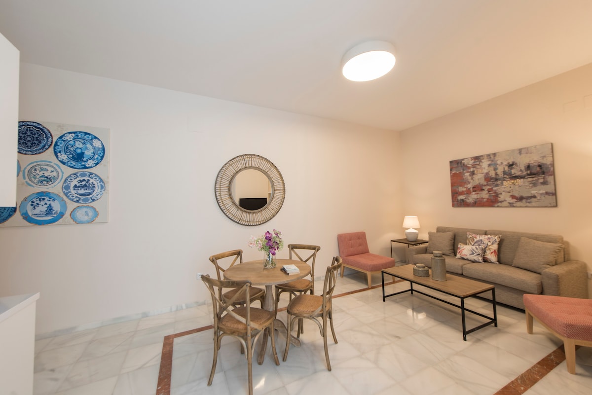 Iontach, fairsing agus díreach athchóirithe in ionad sómasach in 2023 i gcroílár Sevilla, os comhair na 3 shéadchomhartha níos tábhachtaí sa chathair. Tugann an t - ardán príobháideach, radhairc iontacha agus speisialta duit. Árasán ina bhfuil seomra leapa amháin ina bhfuil seomra folctha laistigh den láthair, seomra itheacháin, seomra suí agus cistin lánfheistithe. Déanfaidh eisiachas an árasáin seo mar aon leis na radhairc iontacha fanacht dodhearmadta inár gcathair. Seirbhís aistrithe le táille faoi éileamh.