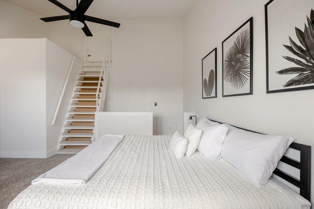 Téigh siar agus lig do scíth sa teach cúil aon seomra leapa ealaíonta seo, atá lán de phlandaí, de phearsantacht agus de dhraíocht íon Austin. Cuir na béilí is fearr leat sa chistin lánstocáilte, ansin téigh go t**n poill sa tolg le haghaidh ragairne Netflix. Tá tobán clawfoot aislingeach sa seomra folctha nuashonraithe - foirfe chun é a scíth a ligean. Téigh amach ar an deic le do chaife ar maidin nó le d'fhíon tráthnóna agus bí ar do shuaimhneas sna snáithíní síochánta. Tá sé an hideaway beag foirfe le fuinneamh mór Austin!