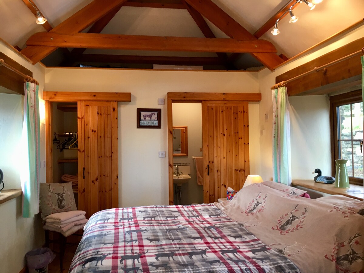 Suite i suíomh tuaithe idilliúil le radhairc fhairsinge thar na móinte i suíomh spéartha dorcha. Is é an scioból darach iontach seo an áit fhoirfe le haghaidh sosa, cé acu an bhfuil tú ag ligean do scíth in aice leis an dóire coille nó ag breathnú ar na radhairc áille ón lochtán gréine príobháideach. Tá cosáin ann le taitneamh a bhaint astu díreach ón scioból thar thalamh feirme, móinteach agus foraoiseacht. Rochtain éasca ar an A30 chun taitneamh a bhaint as cósta álainn an Tuaiscirt, an Cósta Theas agus Devon. An suíomh foirfe do shiúlóirí madraí, réalteolaithe agus rothaí.
