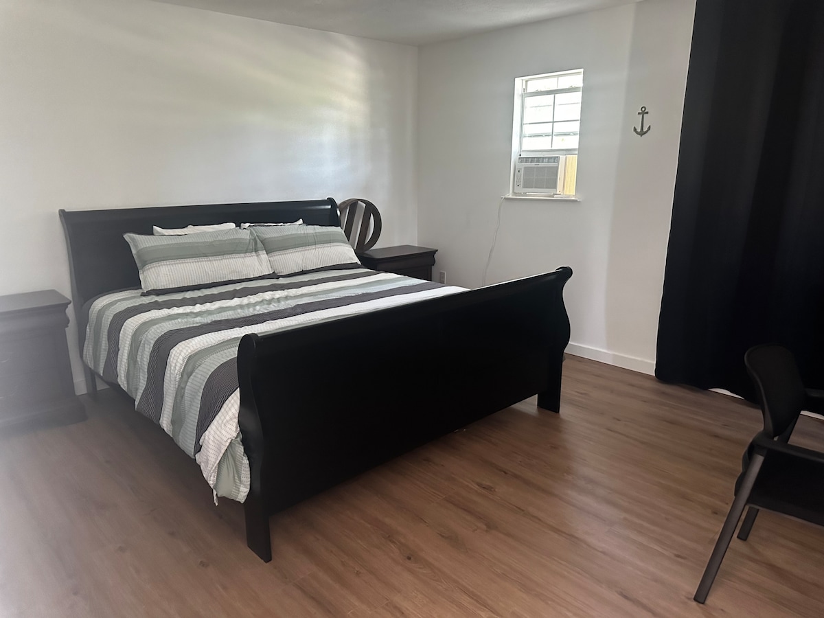 Tá an áit seo thar a bheith teolaí! Is comharsanacht chiúin í ar an abhainn, 2 sheomra leapa, 2 sheomra folctha le garáiste a tiontaíodh ina bheár. Bain sult as do lá ar snámh san abhainn sa chúlchlós agus b'fhéidir beagán iascaireachta. Tá an áit seo oiriúnach do mhadraí agus is breá leo a bheith ag rith ar fud an chlóis agus tú ag ligean do scíthe toisc go bhfuil an clós fálaithe isteach. Tá Wi - Fi beagáinín mall agus téann sé amach ó am go ham ach bain sult as éirí agus luí na gréine álainn agus as spéir ghlan na réaltaí san oíche. Áit iontach le do scíth a ligean.