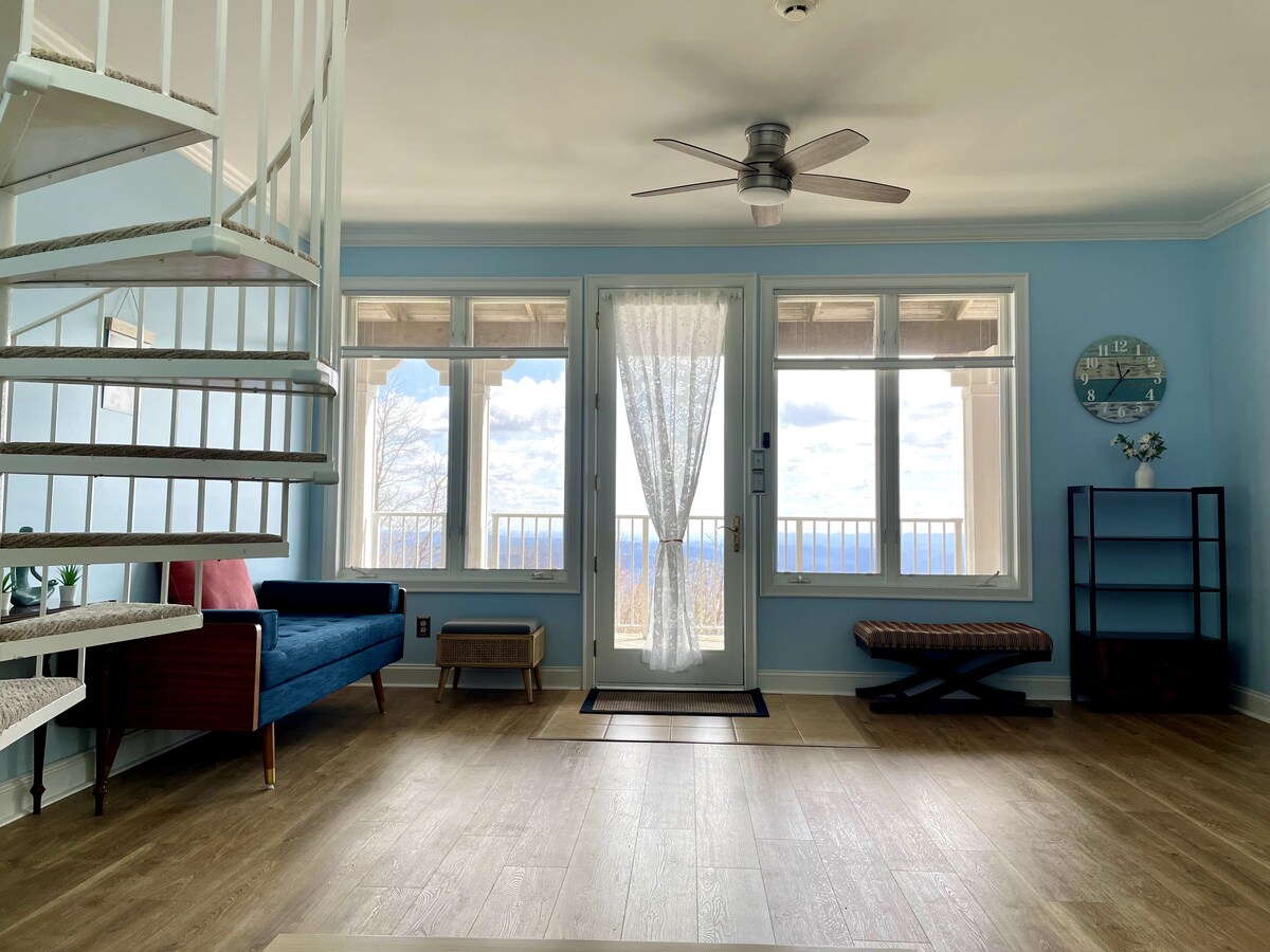 Tá svuít mhilis suite cúpla nóiméad ón Blue Ridge Parkway ar bharr cnoc ciúin féir. Tá spás teolaí, síochánta, álainn, suaimhneach, cruthaitheach, sómasach cruthaithe cruthaithe againn duit chun do scíth a ligean agus taitneamh a bhaint as. Codlóidh tú go maith ar leaba rí ardleibhéil le neart piliúr agus blaincéad le roghnú astu. Tá tolg againn agus 44" roku tv. Tá cistinéad i stíl óstáin againn ina bhfuil caife Keurig, micreathonnán agus mionchuisneoir. Downtown Boone: 14 nóiméad Séideadh na Carraige: 22 nóiméad West Jefferson: 22 nóiméad