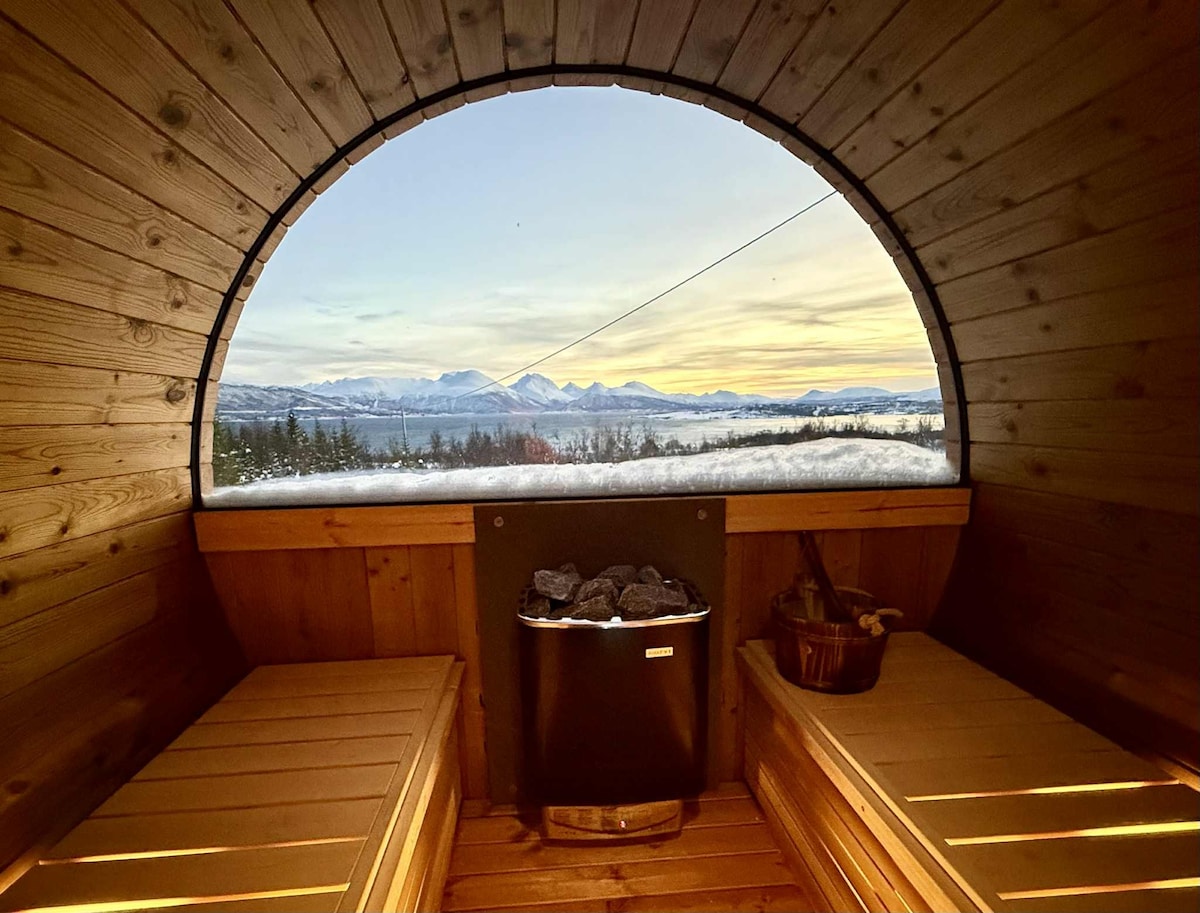 Árasán nua - aimseartha le hardchaighdeán! Tógtha i 2021. In aice leis an dúlra le haghaidh turais sléibhe, sciáil agus céaslóireacht. Déan cadhcáil, téigh ar an gceann is gairide - nó is éasca - beanna sléibhe ag randonee nó ag siúl. Siamsaíocht oíche Tromsøs le bialanna iontacha nóiméad ar shiúl. 2 sheomra leapa dhúbailte. Suite ar dheis cois farraige. 12 nóiméad ón aerfort, 14 nóiméad ón ionad siopadóireachta is mó i dTuaisceart na hIorua agus 20 nóiméad ón gcathair. Siopa áise iontach 4 nóiméad ar shiúl. Gan soilse sráide, gan trácht, gan aon asfalt. Fáilte!