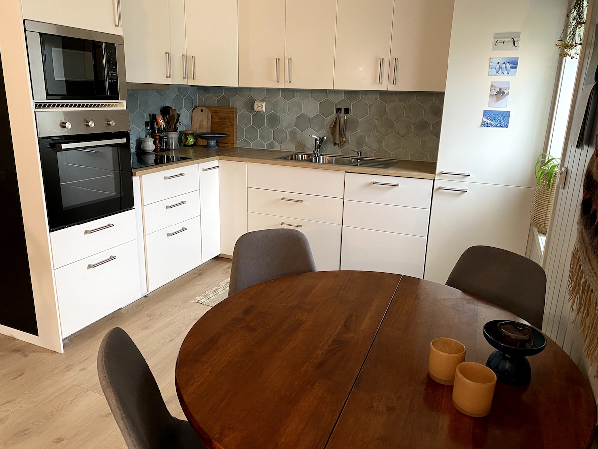 Árasán nua - aimseartha le hardchaighdeán! Tógtha i 2021. In aice leis an dúlra le haghaidh turais sléibhe, sciáil agus céaslóireacht. Déan cadhcáil, téigh ar an gceann is gairide - nó is éasca - beanna sléibhe ag randonee nó ag siúl. Siamsaíocht oíche Tromsøs le bialanna iontacha nóiméad ar shiúl. 2 sheomra leapa dhúbailte. Suite ar dheis cois farraige. 12 nóiméad ón aerfort, 14 nóiméad ón ionad siopadóireachta is mó i dTuaisceart na hIorua agus 20 nóiméad ón gcathair. Siopa áise iontach 4 nóiméad ar shiúl. Gan soilse sráide, gan trácht, gan aon asfalt. Fáilte!