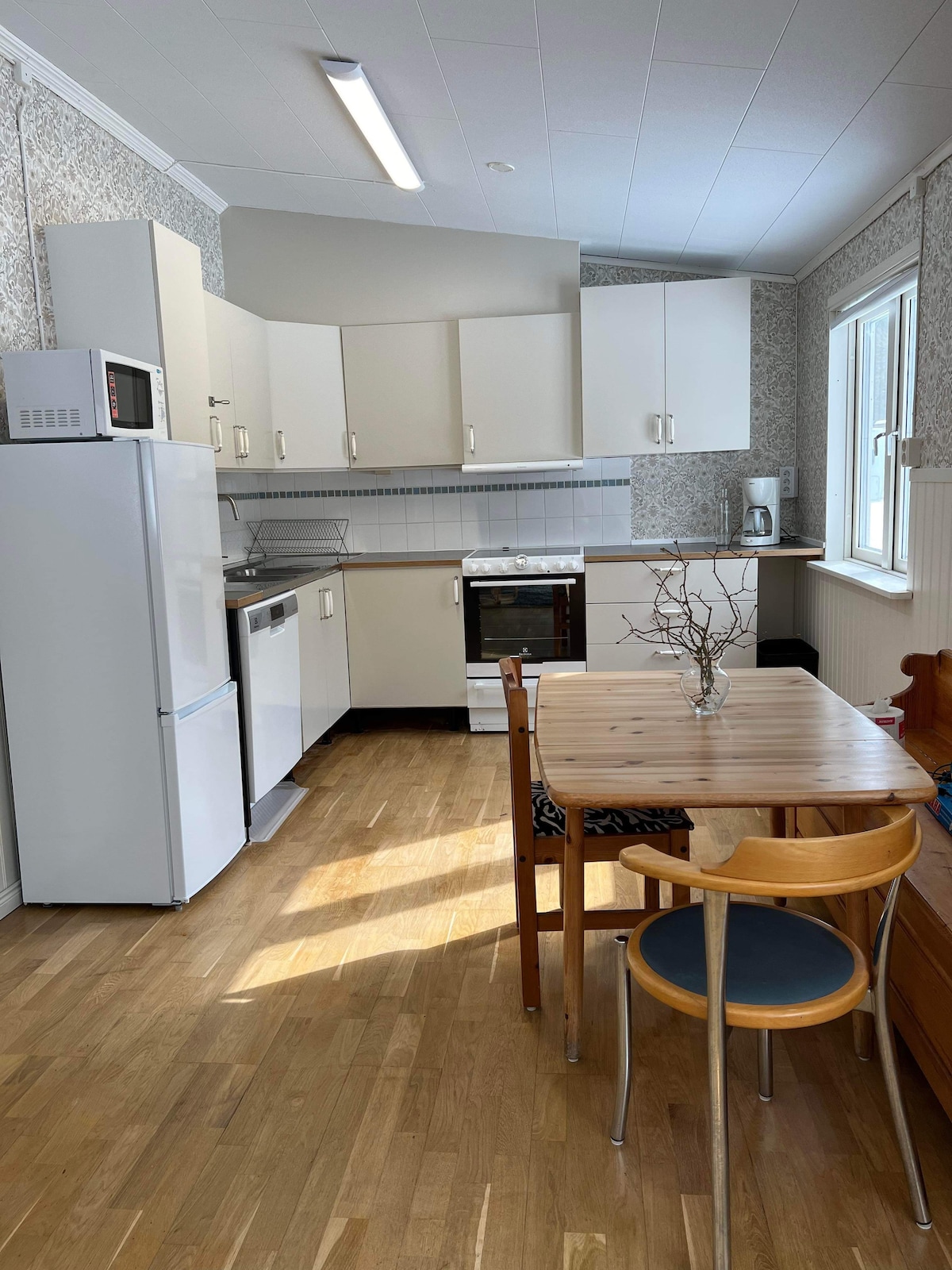 Teachín nuathógtha de 30 méadar cearnach. Siúlóid 5 nóiméad ón gcalafort. - Plean oscailte le cistin agus seomra suí i gceann amháin. - Lochta codlata le 2 leaba shingil. - Tá leaba thoilg sa seomra suí. - Tá iarta ionduchtaithe agus oigheann sa chistin. - Seomra folctha tílithe go hiomlán le leithreas, cithfholcadán agus meaisín níocháin. - Ardán mór timpeall an tí ina bhfuil áit itheacháin. - Is éard atá sa radharc ná foraois péine agus fraochán - Níl an glantachán san áireamh. - Ní cheadaítear peataí - Tugann aíonna a línéadach leapa agus a dtuáillí féin leo (is féidir iad a ligean ar cíos ar SEK 150 an duine)