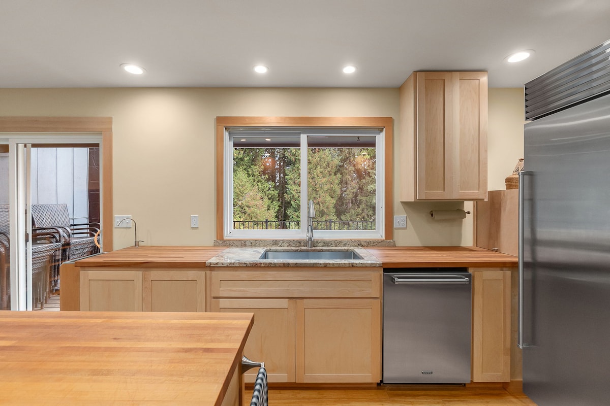 Bain sult as eispéireas faiseanta ag an teach baile mór seo atá suite go lárnach. Siúil go dtí an Edgefield nó croílár stairiúil Troutdale! Fág an chathair, ach fós níl sé ach 13 mhíle ó aerfort PDX. Téigh ag fánaíocht ar an Gorge agus tóg isteach radhairc ar nós Multnomah Falls, snámh nó iasc ar Abhainn Sandy, nó sciáil Mount Hood. Tá an oiread sin le feiceáil agus le déanamh sa suíomh álainn seo! Tar éis lá taiscéalaíochta, lig do scíth ag an teallach laistigh nó suigh ar an mbalcóin chun taitneamh a bhaint as an bhfuacht oíche. Faigh bia in aice láimhe nó cócaráil sa bhaile.