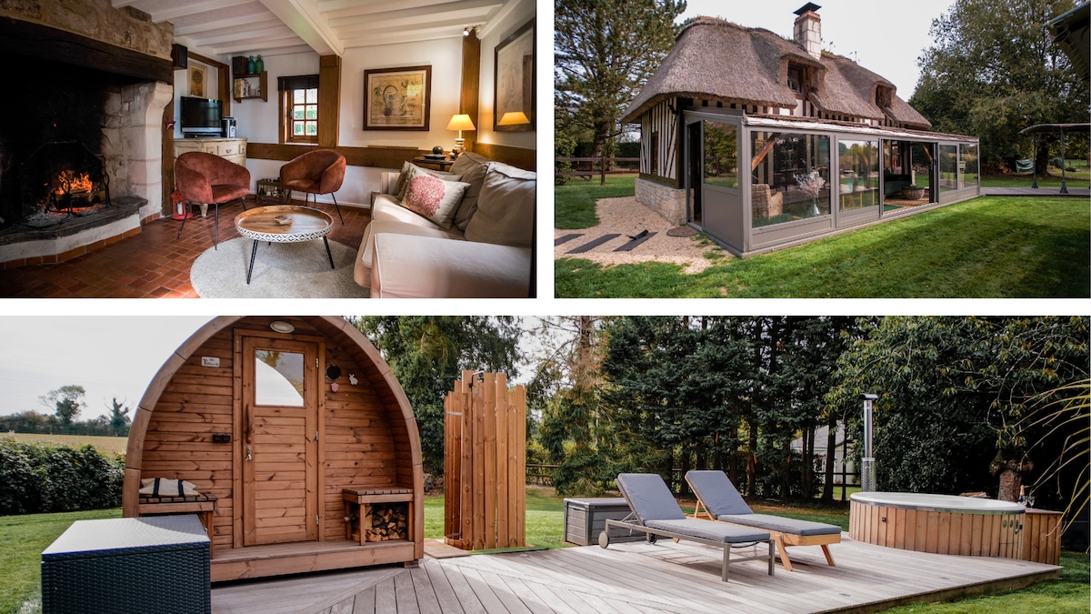 La Prairie Verte – Domaine de la Maison Penchée À seulement 10 minutes des plages de Cabourg et Houlgate, La Prairie Verte est un cottage 4★ qui conjugue charme normand et confort moderne. Entièrement rénové, il a conservé son âme et ses colombages tout en offrant un sauna privatif et une salle de bain balnéo. Avec sa vue bucolique sur le Pays d’Auge, c’est un véritable cocon de sérénité pour se ressourcer en couple ou en famille, entre mer, campagne et patrimoine.