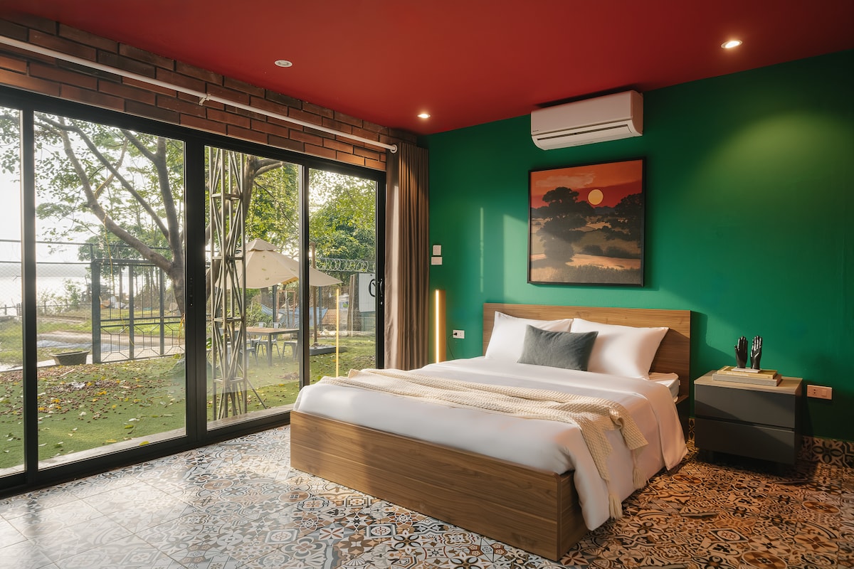 The apartment just opened in June 2025. It is meticulously designed in a mid-century style blended with Vietnamese cultural elements. Most importantly, it’s located right in Hoan Kiem District—just a 5-minute walk to the famous Train Street coffee check-in spot and another 5 minutes to Hanoi’s Old Quarter. Enjoy a stylish experience at this centrally-located place.