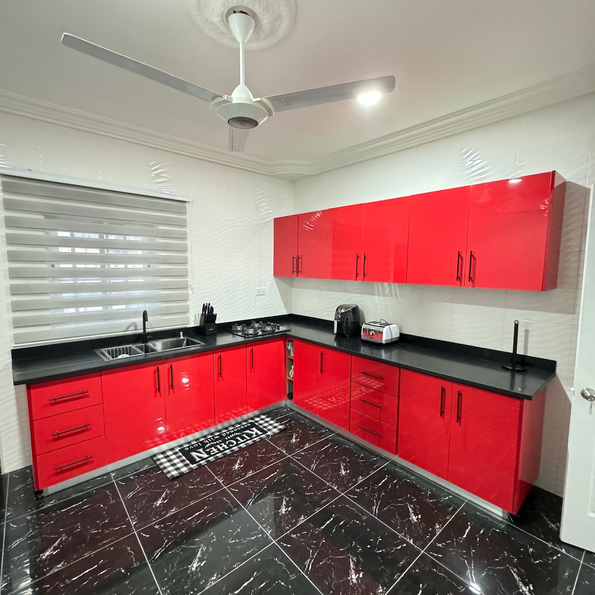 Tabhair an teaghlach ar fad chuig an áit iontach seo ina bhfuil go leor spáis le haghaidh spraoi nó tar i d'aonar. Tá seomra 2 sheomra leapa againn agus 1 seomra leapa atá feistithe go hiomlán agus cistin nua - aimseartha ina bhfuil fearais tá an áit álainn seo suite i gcomhdhúil gheataithe le ceamaraí faireachais.