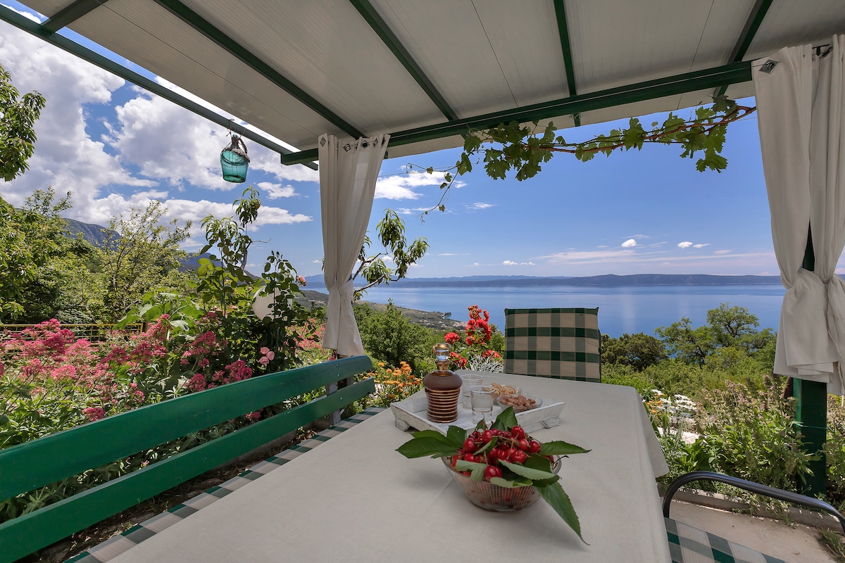 Tosaíonn an téarnamh nuair a thagann tú. Cuirfidh an dúlra fáilte romhat agus roimh amhránaíocht na n - éan, mar nach bhfuil aon chomharsana agat i bhfad agus i gcéin. Agus é athchóirithe go hiomlán i mí na Bealtaine 2013, tá an teach saoire seo i stíl Dalmatian le hardán gairdín álainn suite in áit chiúin. Ó bhun Shléibhte Biokovo, i lár thírdhreach karst iontach, is féidir leat taitneamh a bhaint as radharc iontach ar chathair Makarska agus ar oileáin Brac agus Hvar.