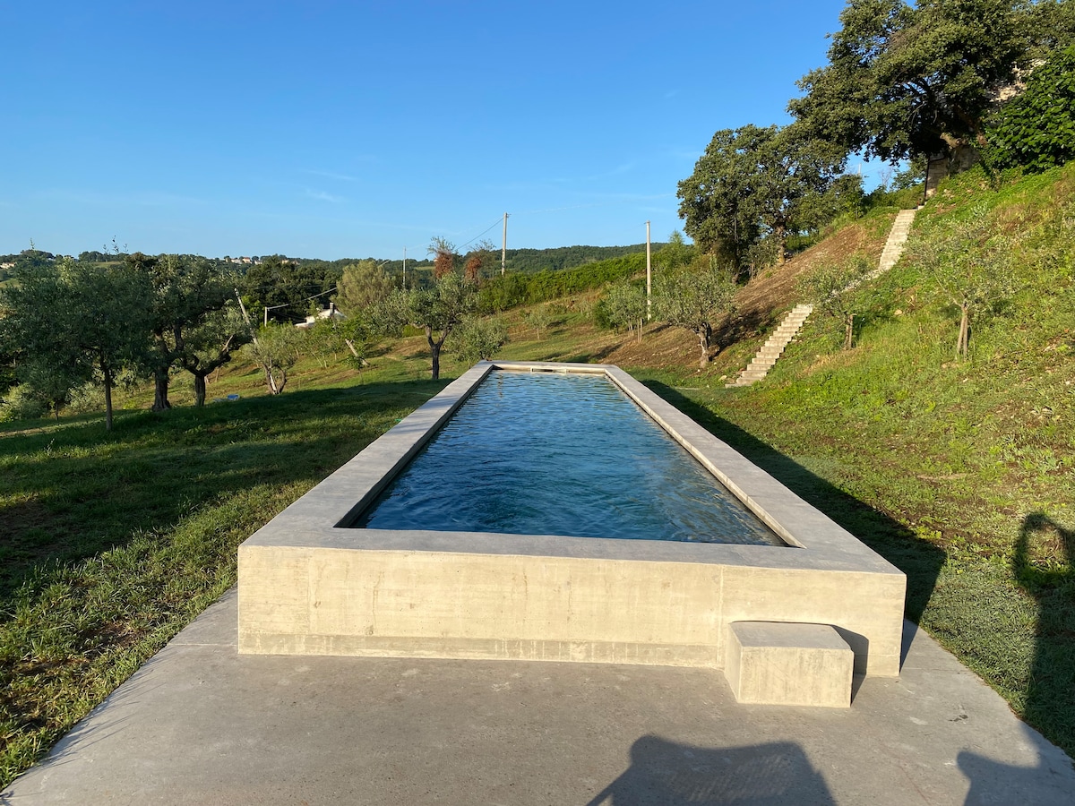 Teach feirme le linn snámha cois cósta Aidriadach