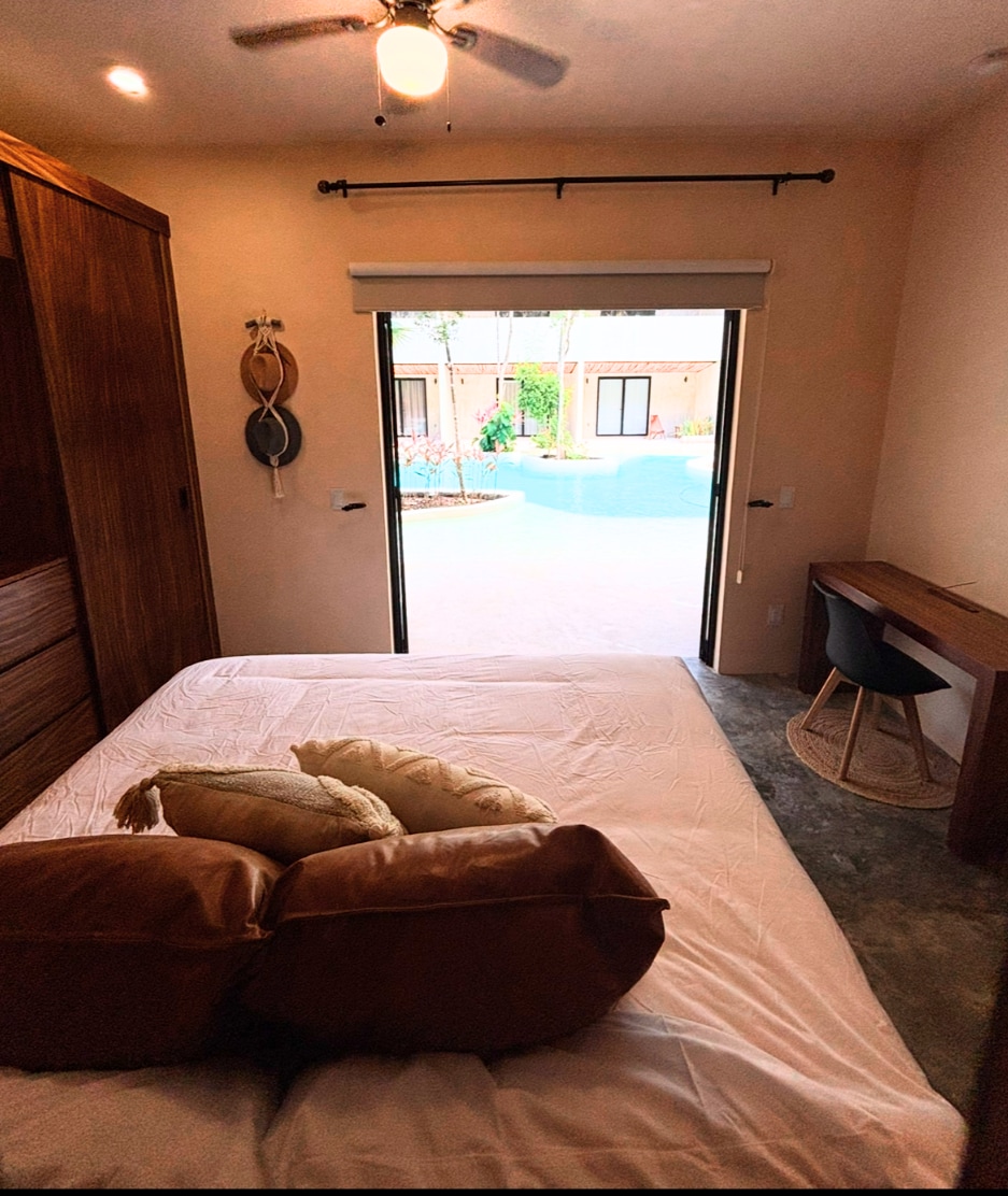 - Lóistíní ar cíos ina bhfuil leaba ar airde inrochtana Tulum