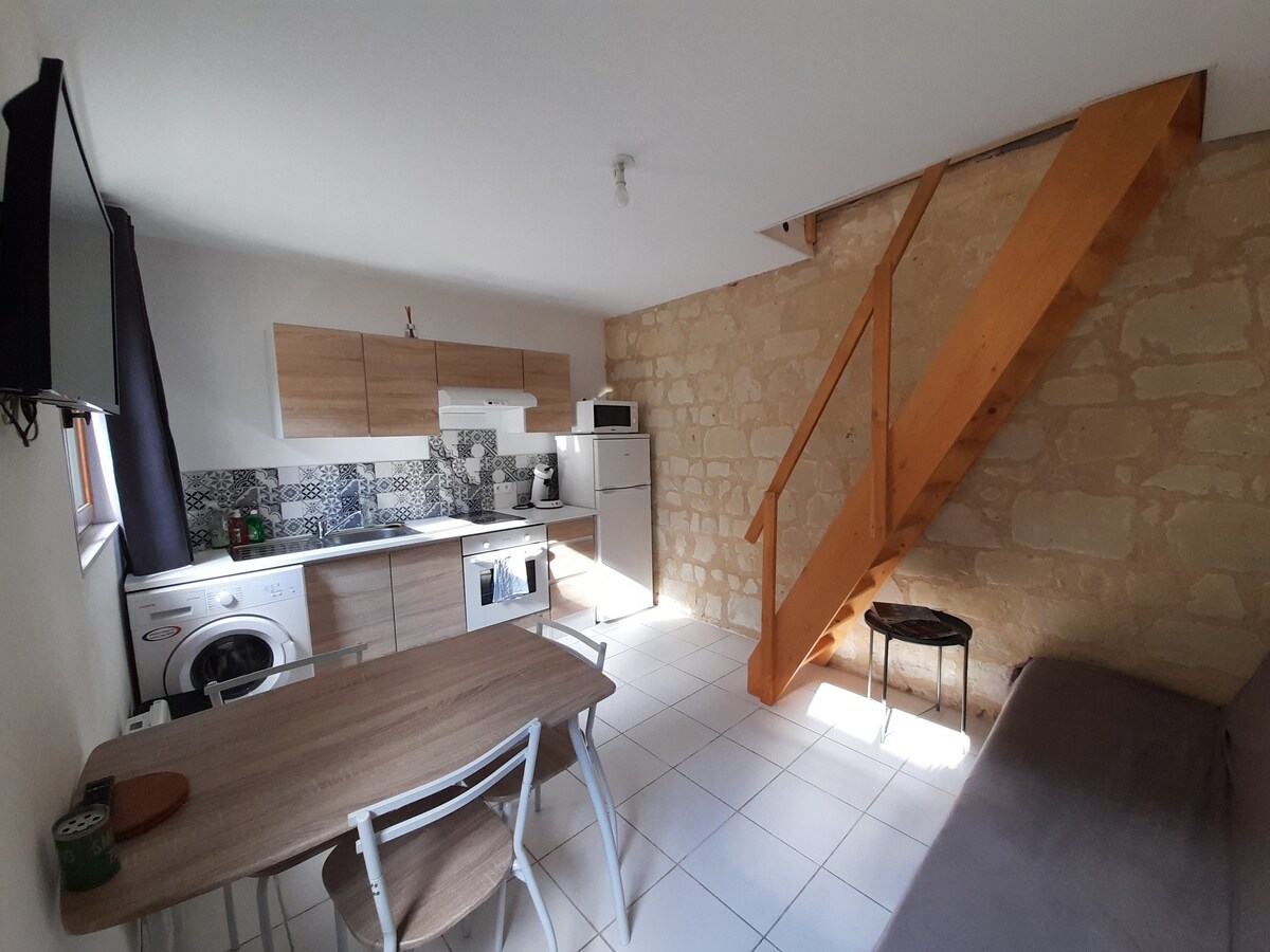 Déphléacs beag 24m2 neamhspleách atá suite i gcroílár shráidbhaile Montsoreau, atá rangaithe mar cheann de na sráidbhailte is áille sa Fhrainc ! Tá an lóistín suite i dtimpeallacht chiúin thaitneamhach, in áit nach bhfuil rochtain ar charranna, ar bhruach an Loire agus ag bun an chaisleáin. Idir Saumur agus Chinon, ar bhealach an Chateaux de la Loire agus an ciorcad "La Loire ar rothar ". Níl aon GHARÁISTE AR ROTHAR (ach is féidir leat do rothair a cheangal den gheata os comhair an dorais). Táimid ag tnúth le fáilte a chur romhat!