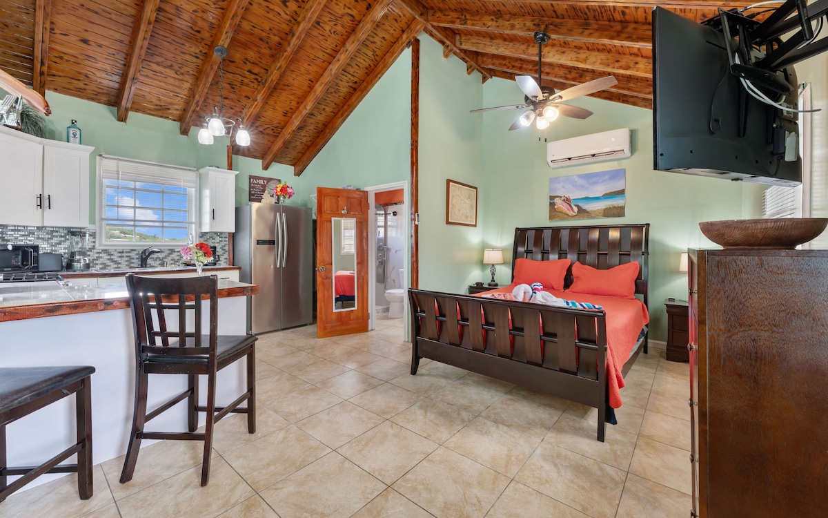 ATHCHÓIRITHE LE DÉANAÍ! Árasán 1Seomra Leapa/1Seomra Folctha suite ag Point Pleasant! Balcóin Phríobháideach Timpeall an Tí—Suíomh Foirfe! Ní féidir leat níos mó a iarraidh! Radharcanna iontacha an bealach ar fad go Lindquist, St John agus an BVI! 2 nóiméad go Coki Beach, 4 nóiméad go Sapphire Beach, 3 nóiméad go Lindquist, in aice le Margaritaville, agus 5 nóiméad go dtí siamsaíocht oíche, bia agus muiríní Red Hook! Príomhshuíomh chun d'eachtraí laethúla a thosú! Tumadóireacht Scúba, Snorcláil, Bádóireacht, Seoltóireacht, Iascaireacht, Fánaíocht, Scairdscíonna, Parasail, Siopadóireacht & Tuilleadh!
