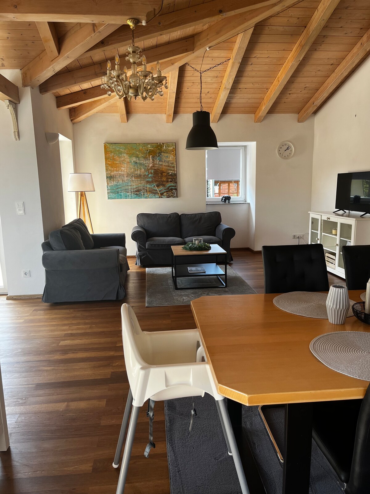 An raibh tú i gcónaí ag iarraidh do laethanta saoire a chaitheamh i dteach adhmaid deartha úrnua nua - aimseartha? Is fíor - bhuaicphointe é ár n - árasán álainn, deartha go grámhar agus dea - fheistithe (65 méadar cearnach) in áit iontach ina bhfuil radhairc lánléargais. I lár na gcnoic áille Alpacha, tá Loch Starnberg ar leac an dorais: an túsphointe foirfe do thurais chuig na sléibhte in aice láimhe, i lár chathair München – nó lig don anam a scíth a ligean sa teach adhmaid thar a bheith teolaí seo.