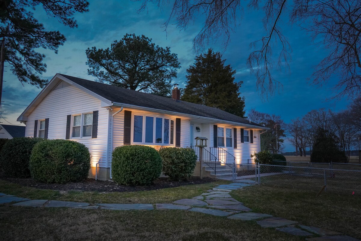 Saoire álainn 2 sheomra leapa/1 seomra folctha ar imeall an uisce, ina bhfuil cistin agus folcadán iomlán, lódáilte le saoráidí ó chaife, gréithe cócaireachta, gríoscán gualaigh go portán, iascaireacht agus cadhcanna. Ag deireadh an lae, bailigh timpeall an chúlchlóis nó téigh ar shiúlóid síos an ché 125+ troigh le haghaidh radhairc áille agus an ghrian ag dul ar Abhainn Wicomico. Níos lú ná tiomáint 10 nóiméad chuig an Red Roost agus Bull Lips Dock Bar nó téigh go dtí Club Tíre an Chnoic Ghlais le haghaidh babhta gailf.