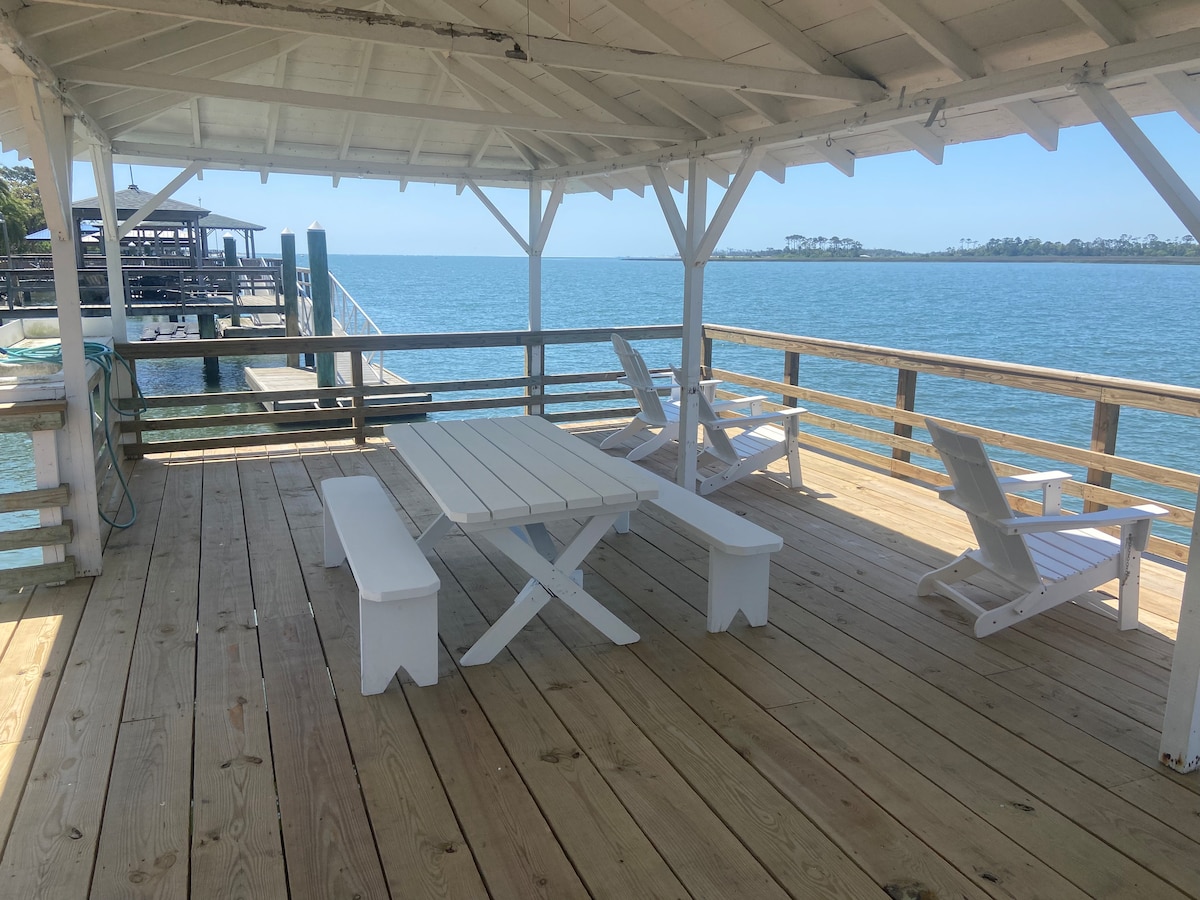 Lonnaithe ag Marina Oileán Tybee ar Lazaretto Creek, feadh theorainn thiar Oileán Tybee, cuireann The Houseboat radharcanna iontacha éirí gréine agus luí na gréine ar fáil atá suite in áit shuaimhneach idir an trá ar Tybee nó lá ag iniúchadh Savannah. Mar gheall ar a shuíomh ar dhuga ar snámh i gcroim taoide, le taoidí ísle a dhéanann aistriú deacair/géar idir na duganna ar snámh agus na duganna ina stad, níl an Bád Tí oiriúnach d'aíonna a bhfuil fadhbanna soghluaisteachta acu.