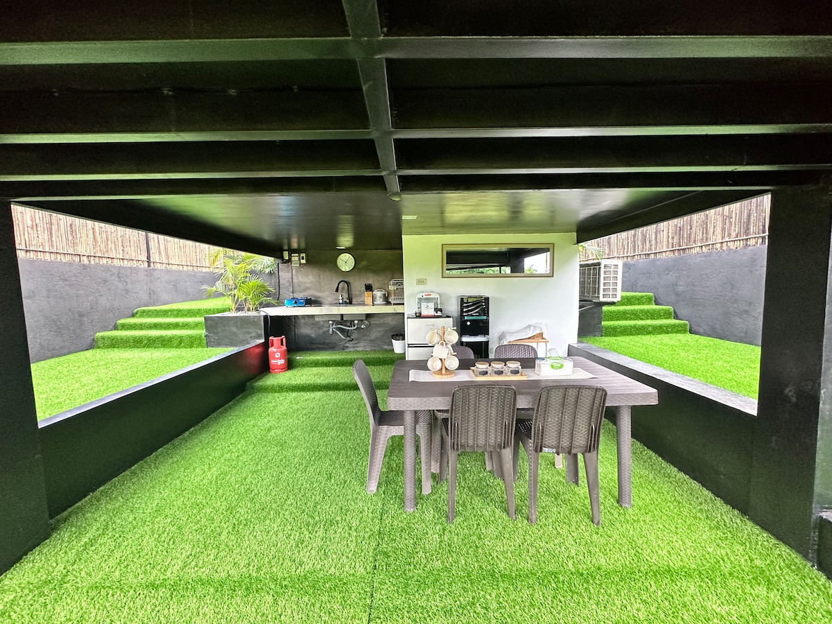 Bain sult as eispéireas galánta nua - aimseartha agus dúchasach atá deartha go foirfe chun freastal ar do bhlas. Tá an villa suite anseo ag Brgy. Uacon, Candelaria, Zambales. Ainm an tSeomra: BAHAY KUBO PRÉIMHE Áitíocht: 4 Pax (Is féidir é a Uasteorainn go 6 Pax le haghaidh P350/ceann le Tocht Breise Saor in Aisce & Beddings) > 2 Leaba Dhúbailte Sized > Aer - oiriúnaithe go hiomlán > Teachín Saor in Aisce > Radharc Tosaigh ar an Trá ó Bhalcóin > Comhlánaigh le Cuisneoir & Flat Screen Tv > Cithfholcadán Te agus Fuar Inrochtana > Wi - Fi