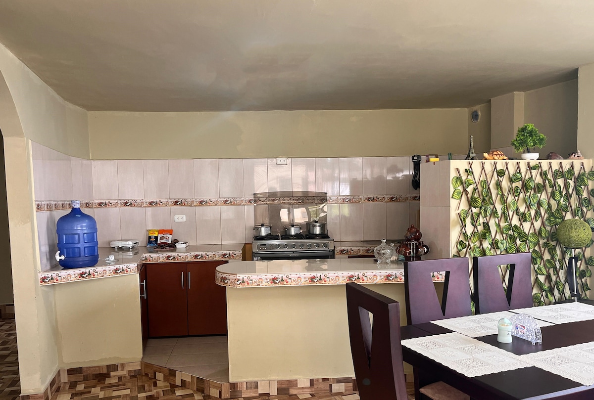 Árasán nua - oscailte, fairsing agus lán le solas, atá suite i gceantar lárchathrach Baños de Agua Santa, foirfe chun do scíth a ligean i sábháilteacht iomlán duit féin agus do do theaghlach. Cúpla céim ó bhialanna, siopaí agus na príomhrudaí is díol spéise do thurasóirí, tá garáiste príobháideach ann freisin. Táimid AG TNÚTH LE TÚ A BHEITH AGAINN!!
