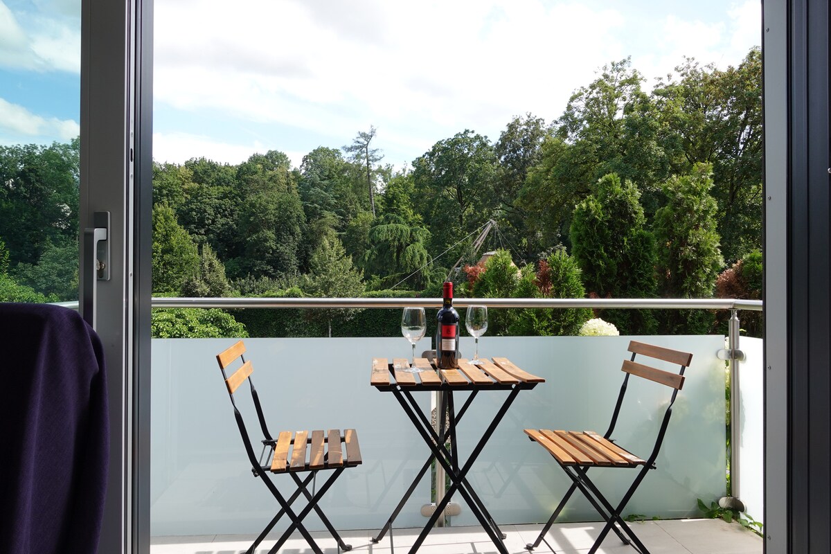 Atmaisféar maith in Ulm: Tá tú i do chónaí i lár Ulm, ach ciúin, díreach ar an abhainn álainn "an gorm mór ". Tá tú i 1 nóiméad. sa tsráid siopadóireachta is cáiliúla "Hirschstrasse" agus i 2 nóiméad ar Münsterplatz /Ulmer Münster. Ón árasán mór ardchaighdeáin ar urlár na talún, tá gach rud laistigh d'achar siúil nóiméad: bialanna, caife trí SPA/linn snámha, músaeim, clós súgartha, pictiúrlann, éagsúla Gníomhaíochtaí fóillíochta. Tar éis áirithint a dhéanamh, seolfaidh mé go leor leideanna agus gníomhaíochtaí chugat timpeall Ulm agus an cheantair máguaird