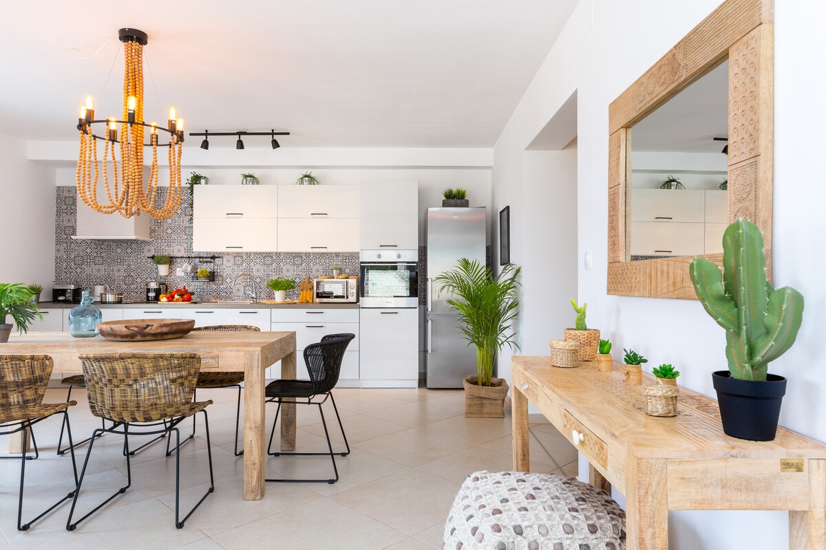 Árasán galánta, fairsing (60 m2 do 2 dhuine amháin!) le radharc díreach ar an amfaitéatar agus ar an bhfarraige ó limistéar maireachtála agus codlata + ardán mór atá lán de phlandaí. Seomra leapa mór amháin le leaba dhúbailte, seomra suí, cistin agus seomra bia, ardán fairsing glas. Wi - Fi saor in aisce, A/C. An chéad urlár. PÁIRCEÁIL praghas maith, atá 3 nóiméad siúil chuig an aip. Suíomh díreach in aice leis an amfaitéatar beidh tú i lár an tseanbhaile vibe. Ní gá ach clocha a chaitheamh amach is féidir leat go leor bialanna agus caiféanna a fháil.