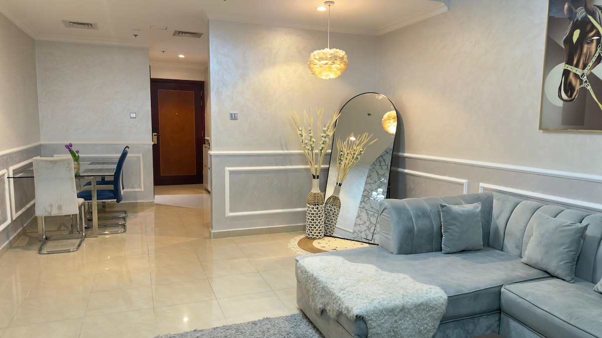 Téigh ar do shuaimhneas ag ár nApt iomlán taibhseach, ardleibhéil in Meydan, Dubai. Deartha do Nomads Digiteacha agus do Thaistealaithe, cuireann an seod Fótaigineach seo compord agus stíl dheiridh ar fáil. Díreach 10 nóiméad. ó Dubai Downtown agus Dubai mall, agus 20 nóiméad. ón dá Dubai Int. Aerfort agus Marina Dubai, tá tú breá ábalta iniúchadh a dhéanamh ar na nithe IS díol spéise IS FEARR SA chathair. Le feistis dearthóir nua - aimseartha agus maisiúchán tuisceanach, is cúlra iontach é do d'eachtra in Dubai. Ar fáil le haghaidh tréimhsí fanachta laethúla nó míosúla.