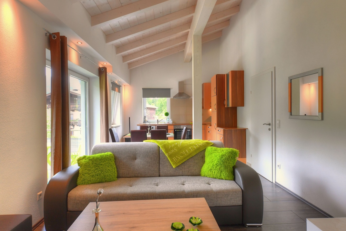 Die Wohnung befindet sich im Obergeschoß eines Einfamilienhauses und ist über eine Außentreppe zugänglich. Sie ist ruhig, neuwertig, stilvoll eingerichtet und besitzt eine große Terrasse. Hinter dem Haus befindet sich eine Bushaltestelle, mit stündlichen Verbindungen in Richtung Lofer / Zell am See, Bad Reichenhall und Salzburg. Ein Lebensmittelgeschäft, ein öffentliches Freibad mit Sauna und Fitnesscenter, die Saalach und diverse Wanderwege befinden sich in unmittelbarer Nähe des Hauses.
