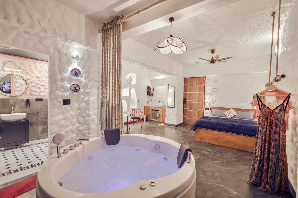 Fáilte go dtí Comhrá Saor in Aisce Airnest Casa Téigh isteach in éalú atá spreagtha ag an Iodáil, áit a mbuaileann teolaí le só. Deartha le hailtireacht shuaimhneach cosúil le pluais agus taobh istigh teolaí, suaimhneach, tugann ár dteach fanachta draíocht Chósta Amalfi go croílár Lucknow. Scaoil isteach inár jacuzzi uisce te agus tú ar maos sna radhairc iontacha spéirlíne — an áit fhoirfe le súimíneacht, le fuarú agus le ham a ligean go mall. Cibé acu an bhfuil tú anseo le haghaidh saoire ghearr rómánsúil nó tearmann suaimhneach, is é seo do shlisne den Iodáil níos gaire duit ná mar a cheapfá.