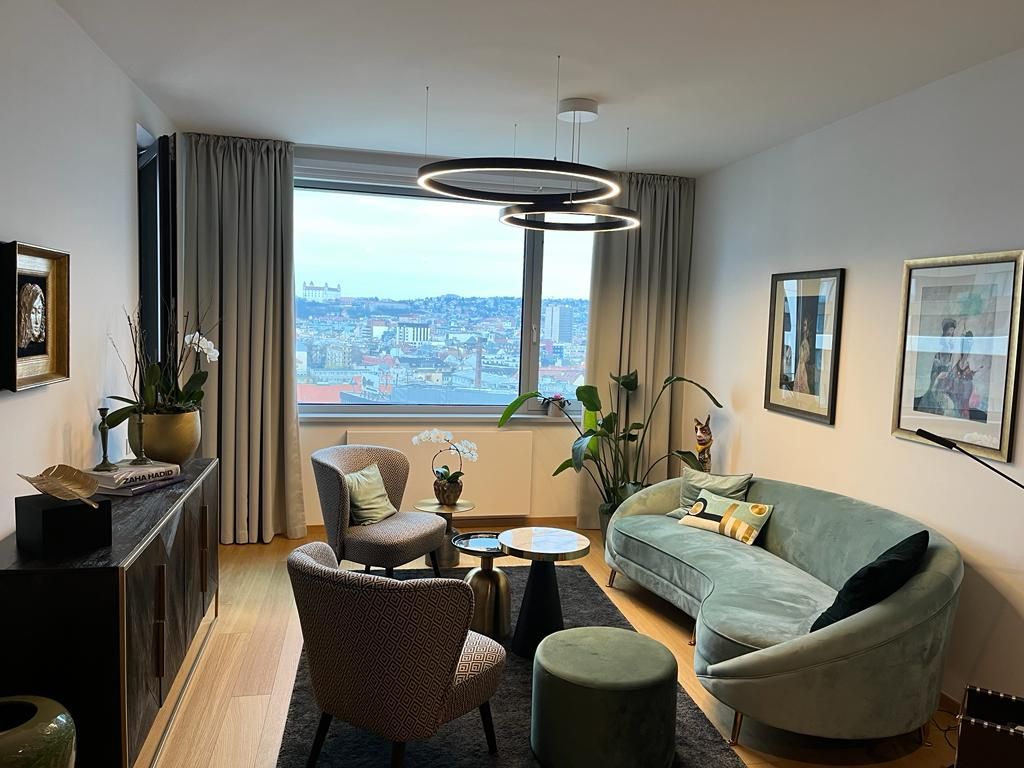Árasán sómasach agus nua - aimseartha i dtionscadal SKY PARK (tionscadal ailtire Zaha Hadid a bhfuil cáil dhomhanda air) i lár na cathrach nua le radharc álainn ar an gcaisleán agus ar an gcathair. Tá an t - árasán suite in aice leis an ionad siopadóireachta Niva is nuaí, 5 nóiméad ó abhainn na Danóibe (ionad siopadóireachta Eurovea) ina bhfuil go leor caiféanna agus bialanna, agus tá lár na cathrach (Seanbhaile) siúlóid 5 -10 nóiméad ar shiúl. PÁIRCEÁIL SAOR IN AISCE SAN FHOIRGNEAMH SAN ÁIREAMH