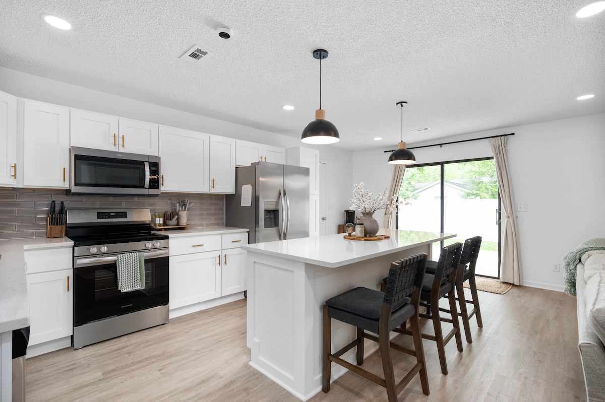 Féinseiceáil isteach! Torann tráchta saor in aisce! Cruthaíodh an lochta cluthar seo d'aíonna i mí Eanáir 2022. Táimid inár suí in imeall lárnach Marion, thart ar 8 nóiméad ó IWU, 5 nóiméad ó bhaile síos, agus 7 nóiméad ó I -69. Le DHÁ sheomra leapa (tá teilifíseán & leaba BHANRÍONA i ngach ceann acu), cistin/áit itheacháin MHÓR, seomra suí TEOLAÍ ina bhfuil teilifís/Roku, agus seomra folctha FAIRSING! Gan TÁILLE GHLANTACHÁIN agus páirceáil SAOR IN AISCE díreach os comhair do dhorais! Go raibh míle maith agat as tacú leis an ngnó beag áitiúil seo atá á óstáil ag Philip agus Andrea.:)