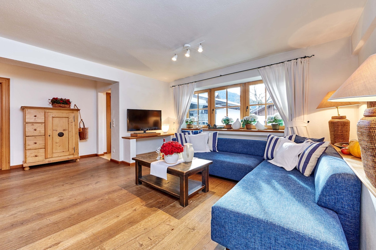Tá an t - árasán ‘Wendelsteinblick' ar urlár uachtarach an tí 'Traudl' agus tá: Is féidir seomra suí, cistin ina bhfuil bord bia, seomra leapa (leaba dhúbailte), seomra leapa eile (2 leaba earraigh bhosca, a chur le chéile freisin), seomra folctha le cithfholcadán/tobán folctha/leithreas, leithreas ar leith, balcóin atá dírithe ó dheas agus ardán dín le troscán Teilifís SATAILÍTE. Baineann spás páirceála cairr leis an árasán. San íoslach tá seomra níocháin le meaisín níocháin agus an fhéidearthacht a thriomú le húsáid chomhroinnte; gairdín le húsáid chomhroinnte freisin.