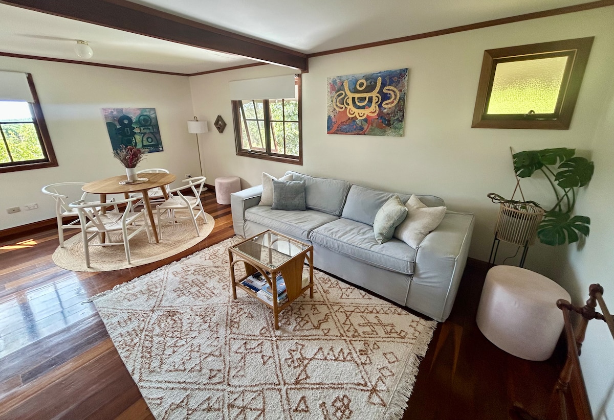 Teachín atá athchóirithe go hiomlán in Upper Burringbar, 5 nóiméad sa charr ó Chonair an Iarnróid. Bain sult as cistin lánfheistithe, seomraí leapa Rí & Banríona, chomh maith le tolg Banríona fillte amach. Ith cois teallaigh nó ar an verandah, nó beárbaiciú amach ar ais. Fan ceangailte le hidirlíon tapa Starlink agus Teilifís Satailíte. Lucht leanúna ar fud, ealaín bhunaidh, agus troscán. Beárbaiciú lasmuigh, uisce flúirseach an earraigh, siúlóidí síochánta ar an réadmhaoin, agus suíomh tuaithe suaimhneach. Ideal le haghaidh scíthe nó eachtraíochta. Creek úr le luí ann. Fáilte roimh pheataí.