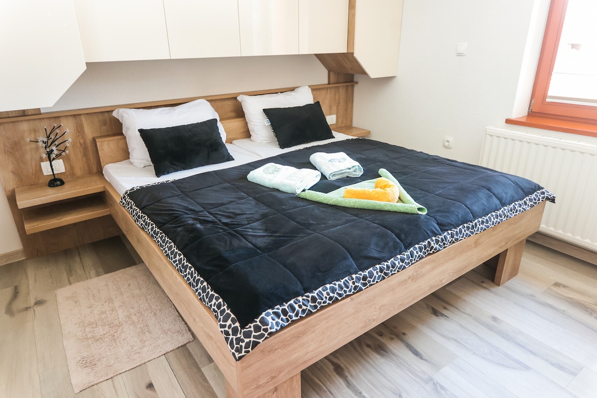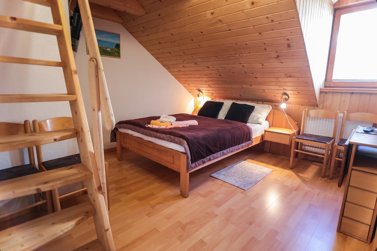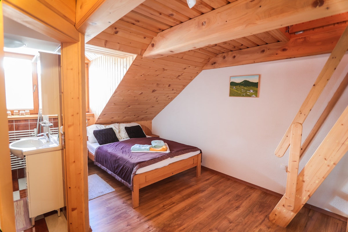 Beautiful loft apartment with a magnificent mountains view. Apartment is located on the farm so your children will have opportunity to meet our animals such as: cows, chickens, cats and our friendly German shephard Sia. We also offer: free private parking, Wi-fi, cabel TV, free bicycle rental, basketball basket, table tennis table with rackets. There is an outside grill you can use in the backyard with a nice sitting area on the grass beside it.