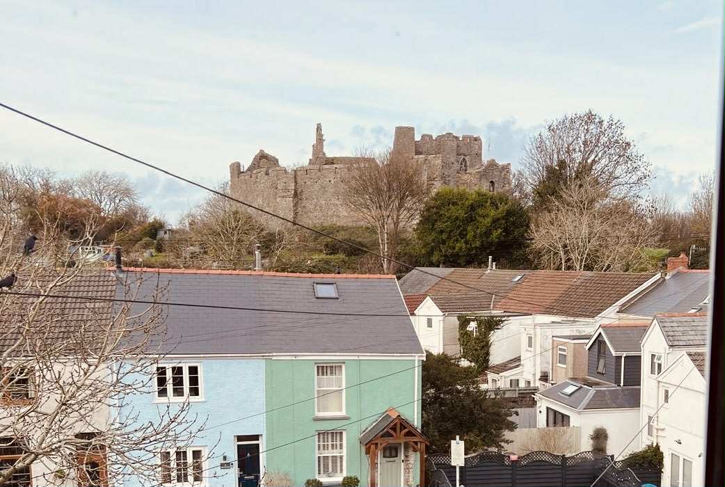 Árasán nua-aimseartha i gcroílár Mumbles le Radharc ar an gCaisleán