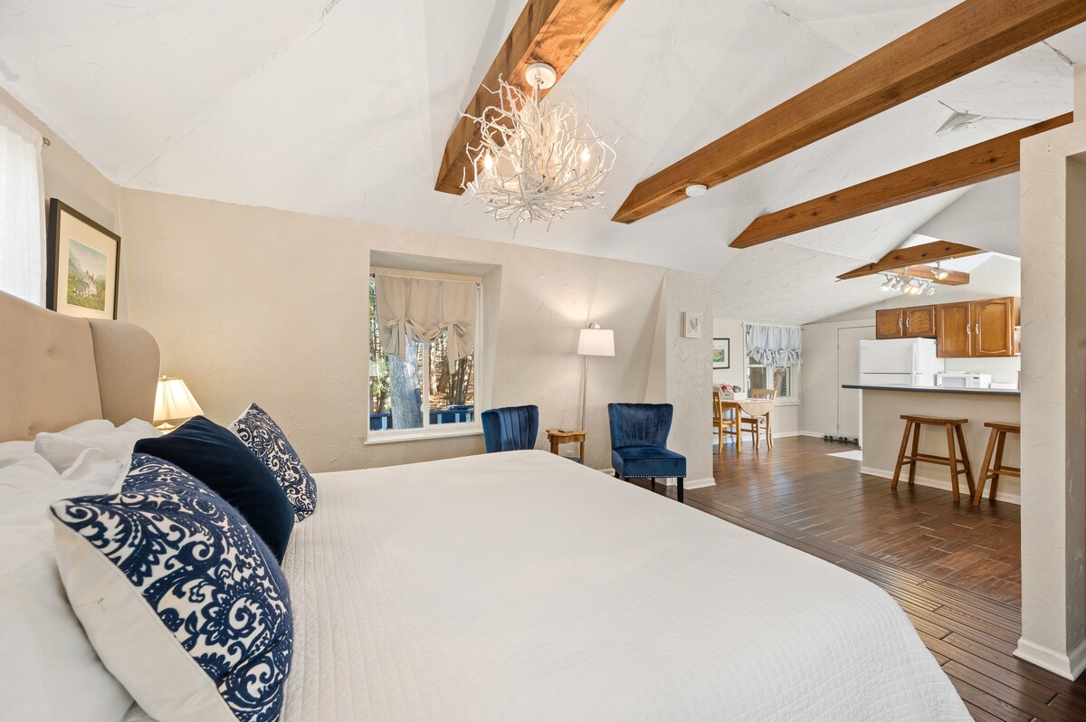 Tá spléachadh ar an Loch ón Loft Teachín Eagle Harbor! Is árasán/lochta é atá athchóirithe le téama locha (os cionn an gharáiste scoite) atá neadaithe sna coillte taobh thiar de phríomhtheach an úinéara. Tá bealach isteach príobháideach agus spás páirceála d'aíonna ag aíonna. Tá rochtain ag aíonna ar dhuga príobháideach in aice leis an Loch chun a scíth a ligean agus taitneamh a bhaint as luí na gréine. Tá dhá rothar agus 2 chadhc ar fáil le húsáid ag aíonna chomh maith. Tugaimid cuireadh duit am a chaitheamh ag athnuachan agus ag machnamh ar áilleacht agus síochántacht na gcoillte agus an locha.