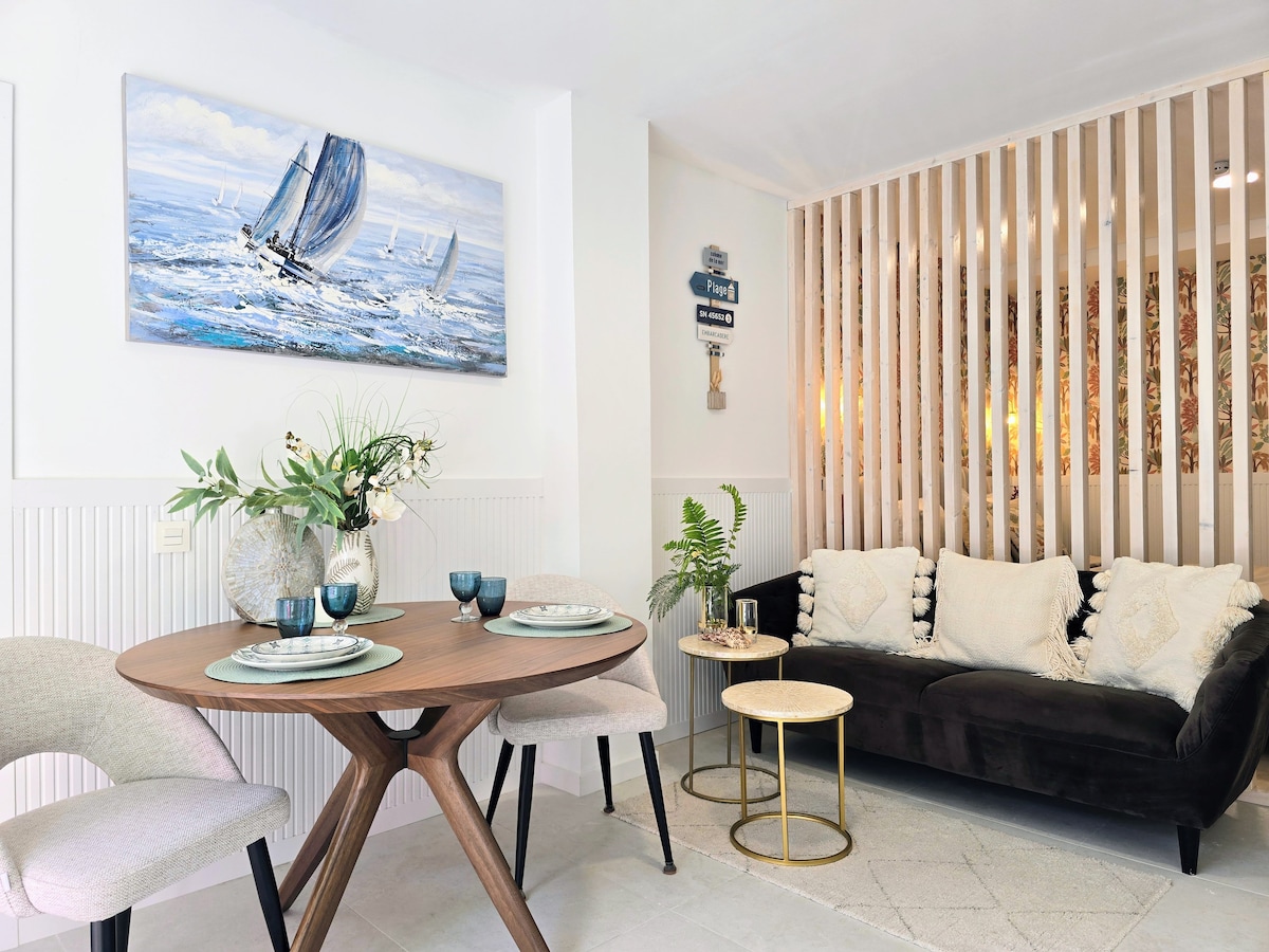 Welcome to your designer apartment in Mijas, where modern style blends with Mediterranean charm. Everything is new, fresh, and uniquely designed, featuring high-quality furnishings and thoughtful details throughout. Experience the boutique hotel atmosphere combined with the comforts of home, terrace, seasonal pool (open 1/4-1/10), and beaches, cafés, and restaurants in the Surroundings. Perfect for couples, families, or friends, this apartment is made for relaxation and memorable moments.