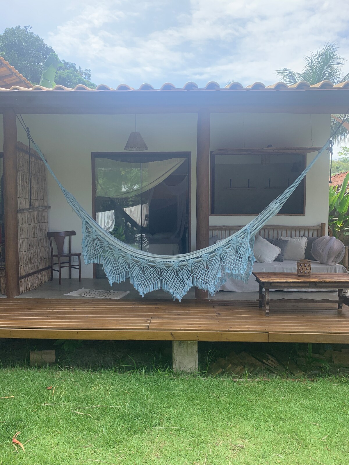 Teach trá iontach teolaí i lár comharsanachta ciúin sábháilte! Trá phríobháideach go praiticiúil, suite go maith dóibh siúd atá ag lorg scíthe agus spraoi in aon áit amháin. In aice le sráidbhaile Serra Grande agus an bhialann Cabana da empada, gan trácht ar na cosáin agus na tránna iontacha nach bhfuil ach cúpla nóiméad sa charr uait! Tá 3 sheomra leapa, cistin, seomra suí agus áit lasmuigh sa teach ina bhfuil beárbaiciú, chomh maith leis an áit ghlas agus an spás do na páistí chun taitneamh a bhaint as!