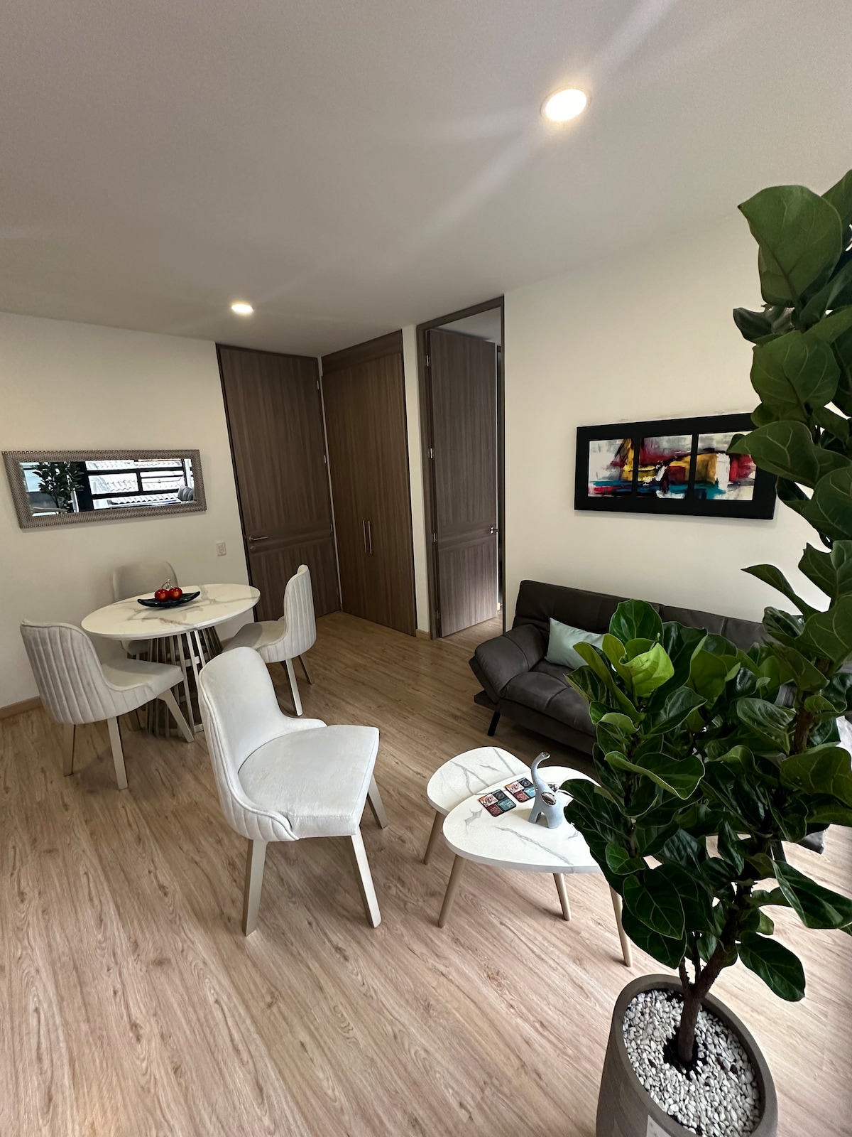 Disfruta de un lujoso penthouse en la localidad de Usaquén, cerca al centro comercial Santa Ana. Cuenta con habitación principal, baño privado con jacuzzi de hidromasaje, ducha caliente y closet. Sala con sofá cama, comedor, balcón y cocina equipada. Ingreso inteligente y parqueadero cubierto lineal (Por obras de rehabilitación vial se presenta cierre de vía desde Octubre hasta Noviembre 2025, no es posible ofrecer el servicio de parqueadero estos meses). Ubicado en un 5° piso sin ascensor.