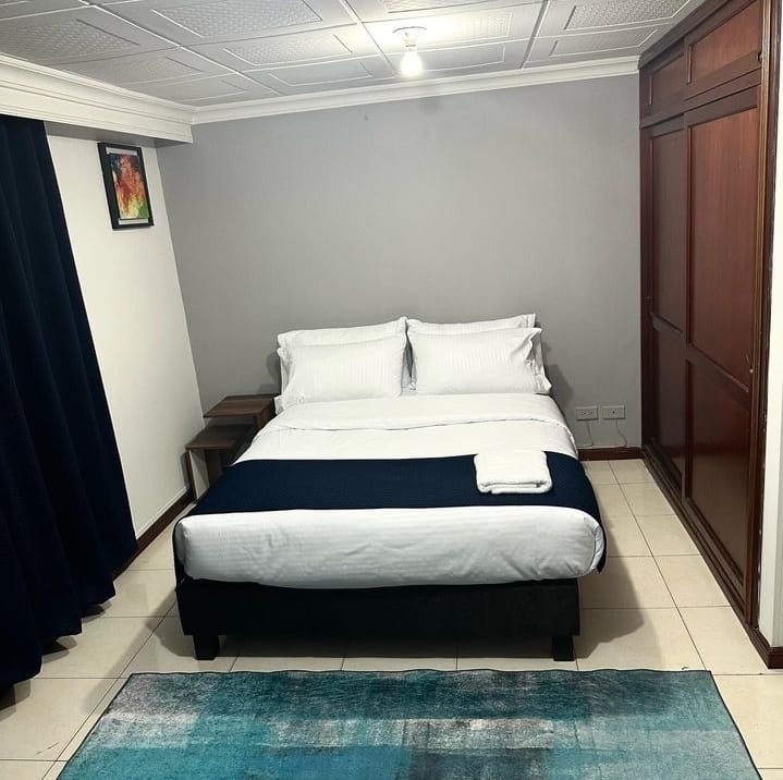 Déan iniúchadh ar an gcompord inár seomra fairsing in Bogotá, atá feistithe le leaba dhúbailte theolaí, leaba shimplí agus leaba thoilg chompordach. Comhcheanglaíonn an dearadh nua - aimseartha agus feidhmiúil le sonraí teolaí, ag tairiscint spás ildánach atá oiriúnach do theaghlaigh nó do ghrúpaí. Bain sult as fanacht taitneamhach ina bhfuil na saoráidí go léir a theastaíonn uait.