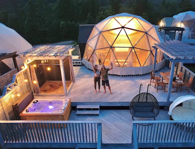 We honeymooned in The Majestic Treehouse in Walhalla. Since then, we've continued to build in other beautiful nature settings across the USA.