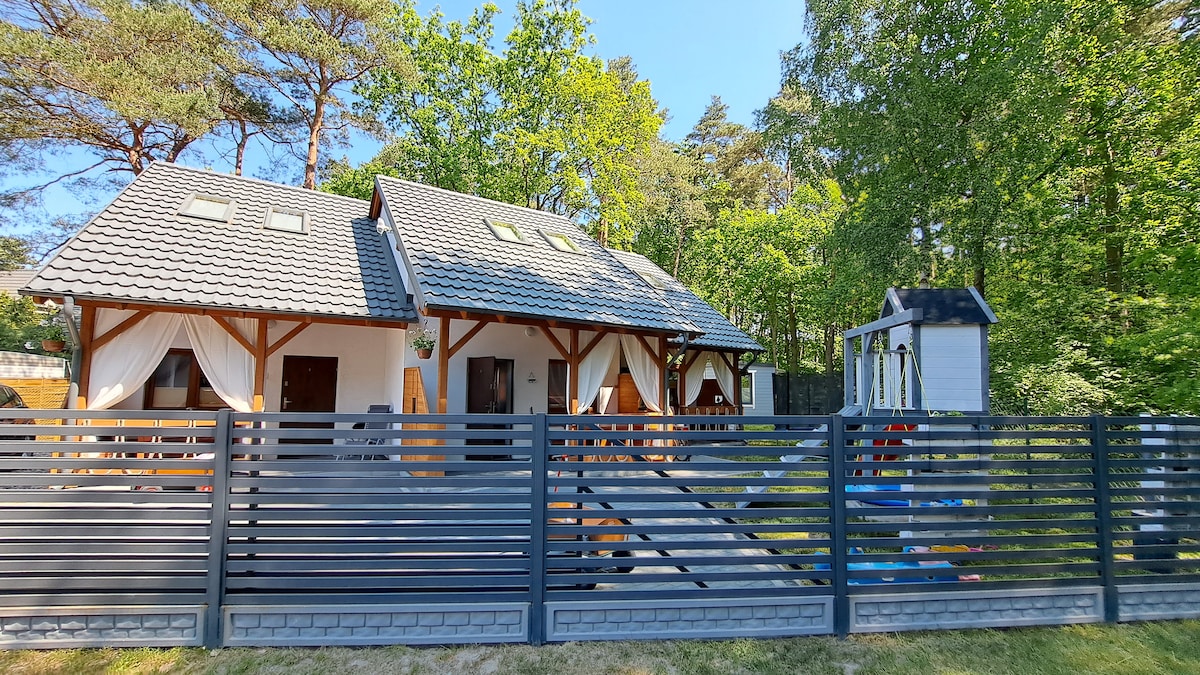 Komfortowy Dom o powierzchni 74 m2, z prywatną strefą SPA (jacuzzi i sauna sucha - na wyłączność, bez dodatkowych opłat). Ogrodzona działka daje poczucie własnej przestrzeni i prywatności. 2 sypialnie (w każdej sypialni łóżko 160x200 cm oraz rozkładana sofa 120x190 cm). Z panoramicznego okna jednej z sypialni roztacza się piękny widok. Na tarasie znajduje się grill gazowy, duży stół i 6 krzeseł oraz wygodny bujany fotel. Leżaki i parawan plażowy. 2 miejsca parkingowe.