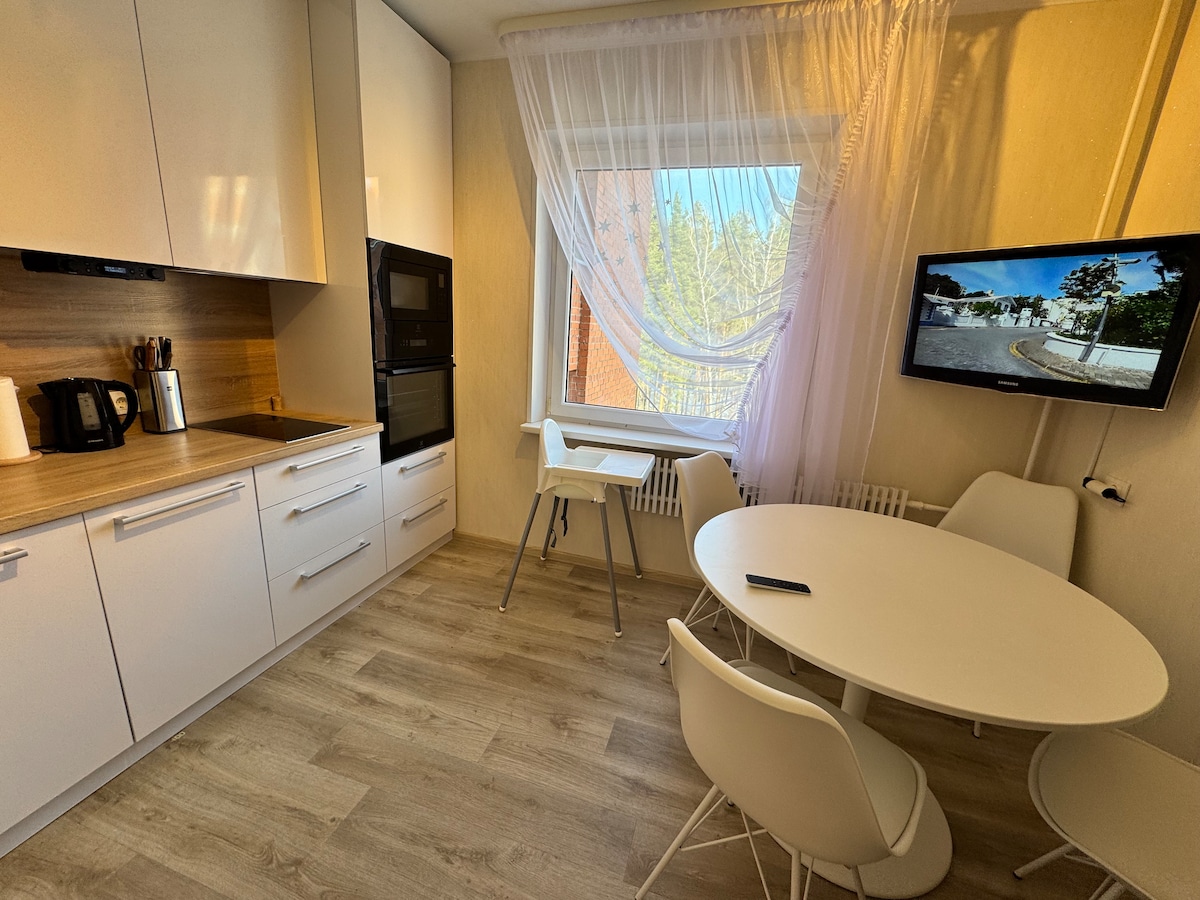 Tá árasán teolaí i gcroílár Visaginas ag fanacht leat! Lonnaithe i lár na cathrach, in aice le Cearnóg Santarves agus ionad siopadóireachta Domino. Tá ardaitheoir feistithe san fhoirgneamh, rud a fhágann go bhfuil sé inrochtana do lánúineacha scothaosta agus do dhaoine faoi mhíchumas. Agus é athchóirithe le déanaí, tá amharclann tí san árasán ina bhfuil teilgeoir le haghaidh tráthnónta teaghlaigh dodhearmadta. Tá dhá bhalcóin fhairsinge oscailte do radhairc áille de lár na cathrach, ag líonadh an spáis le solas agus aer.