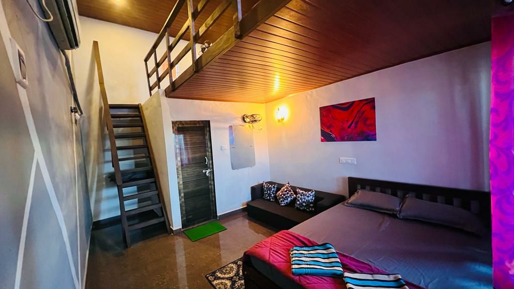 Neadaithe i dtírdhreach suaimhneach Gokarna, tá an villa seo timpeallaithe ag cnó betel méith agus plandálacha cnó cócó, ag tairiscint éalú suaimhneach isteach sa dúlra. Tá tailte fairsinge sa réadmhaoin atá lán le glasra bríomhar. Agus tú ag breathnú thart ar an gceantar, bí faoi dhraíocht ag fuaimeanna agus radharcanna na bpéacóg ag fánaíocht faoi shaoirse. Díreach laistigh de 5 nóiméad d'achar siúil, gheobhaidh tú an taobh síochánta de thrá Gokarna. Tá saoráid AC ag an réadmhaoin seo. Lig do scíth leis an teaghlach ar fad san áit shuaimhneach seo le fanacht.
